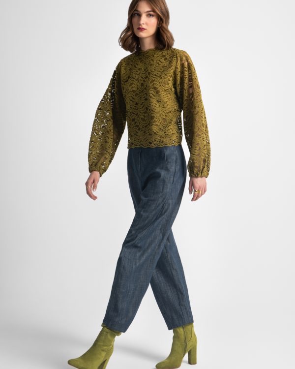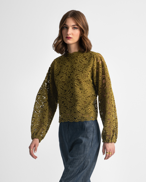 Lace blouse with long sleeves and round neckline – Moutaki