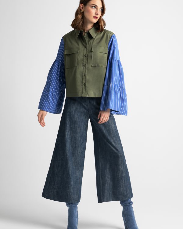 Shirt with fabric combination with flared sleeves – Moutaki