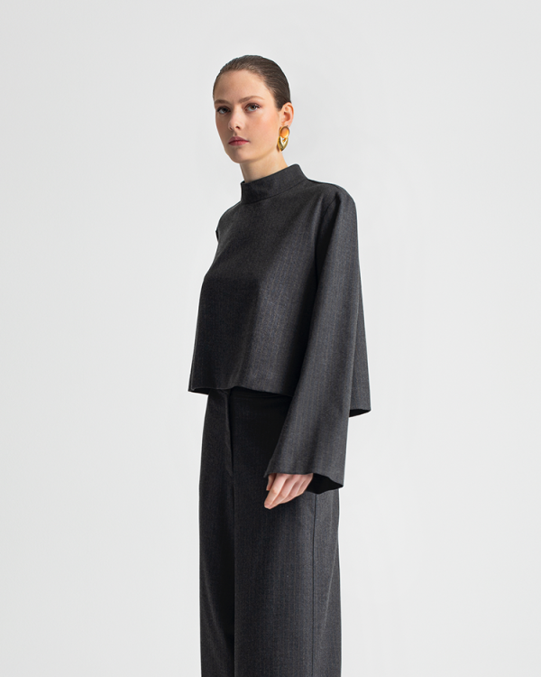 High-neck blouse with flared sleeves -Moutaki