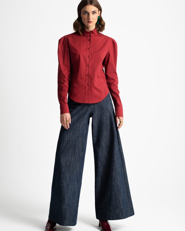 Cotton shirt with balloon sleeves and pleated detailing – Moutaki