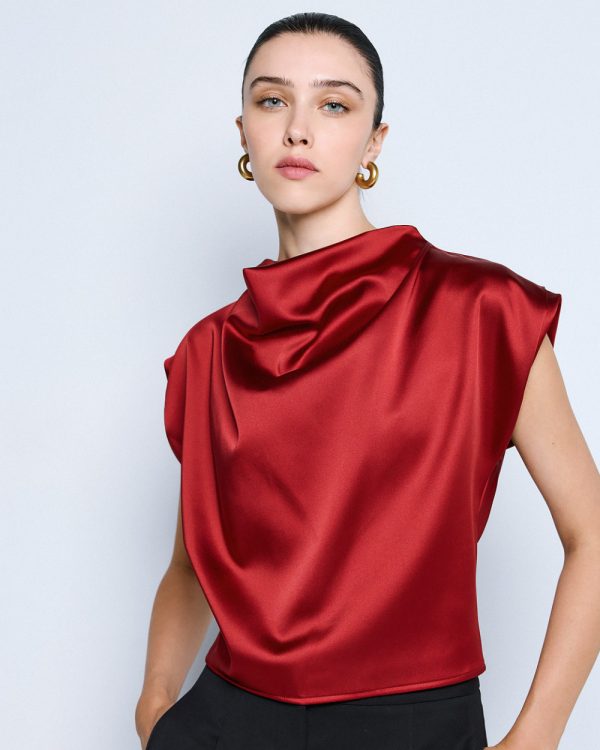 Satin short-sleeve blouse with a round neckline – Access Fashion