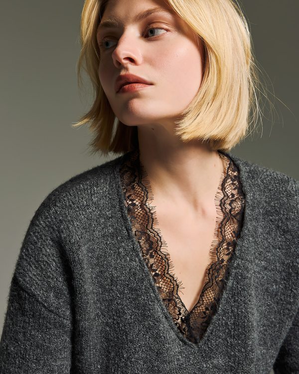 Lace detail knit sweater with v-neck – Tailor Made Knitwear