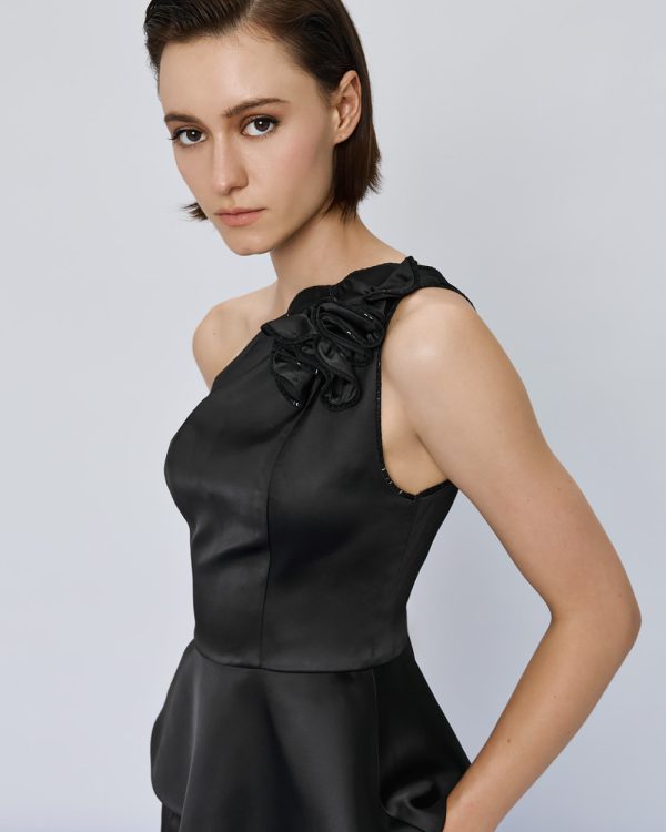 Satin one-shoulder top with floral detailing – Access Fashion