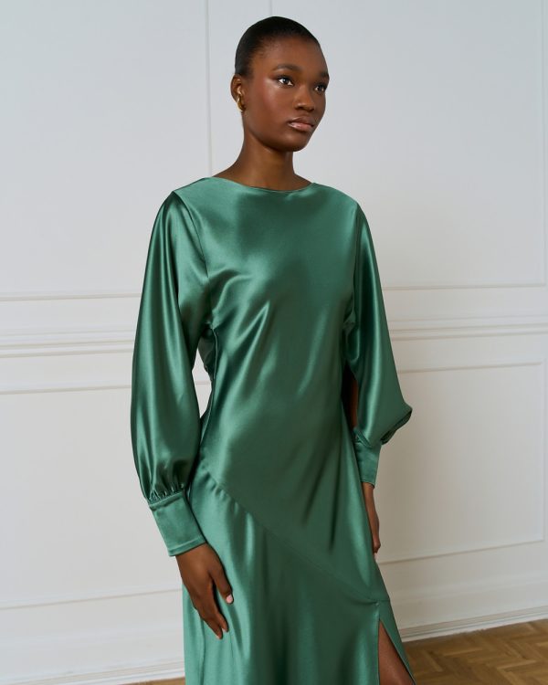 Satin dress with draped back – Access Fashion