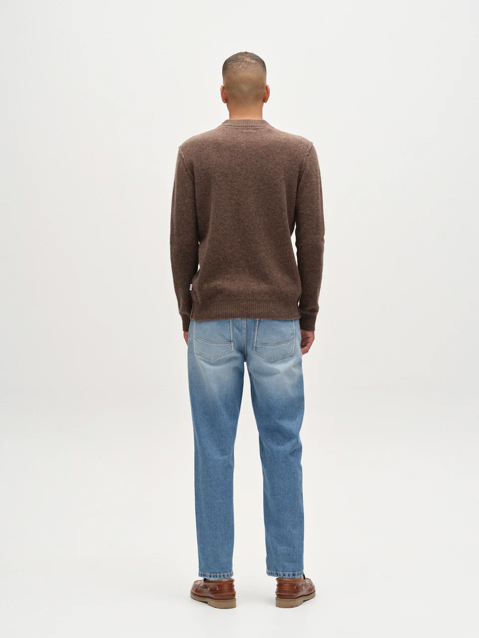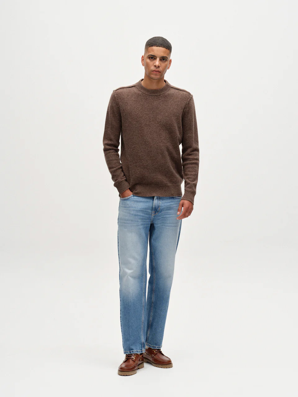 This crew-neck sweater crafted from a soft wool-blend knit for warmth and everyday comfort. Designed with a clean, minimalist silhouette, it features finely ribbed trims at the neckline, cuffs, and hem for a refined finish.