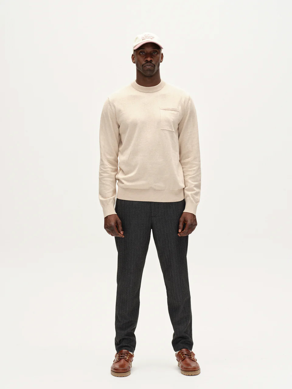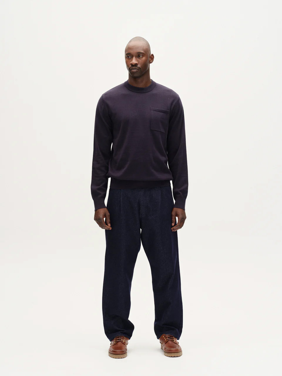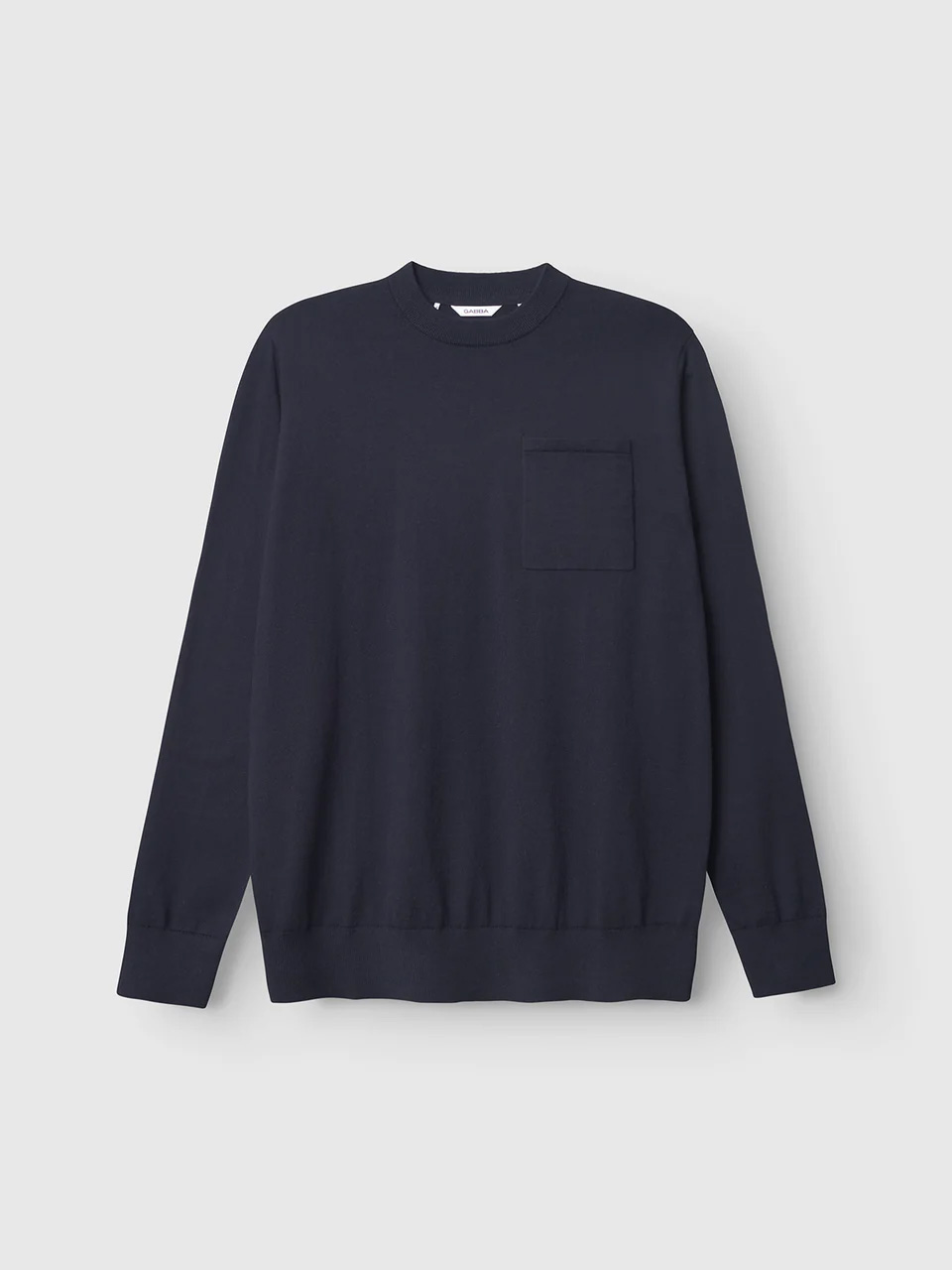 Featuring a crew neckline and a neatly stitched chest pocket. The ribbed cuffs and hem create a structured fit. This long-sleeve knit is crafted with a smooth, lightweight texture.
