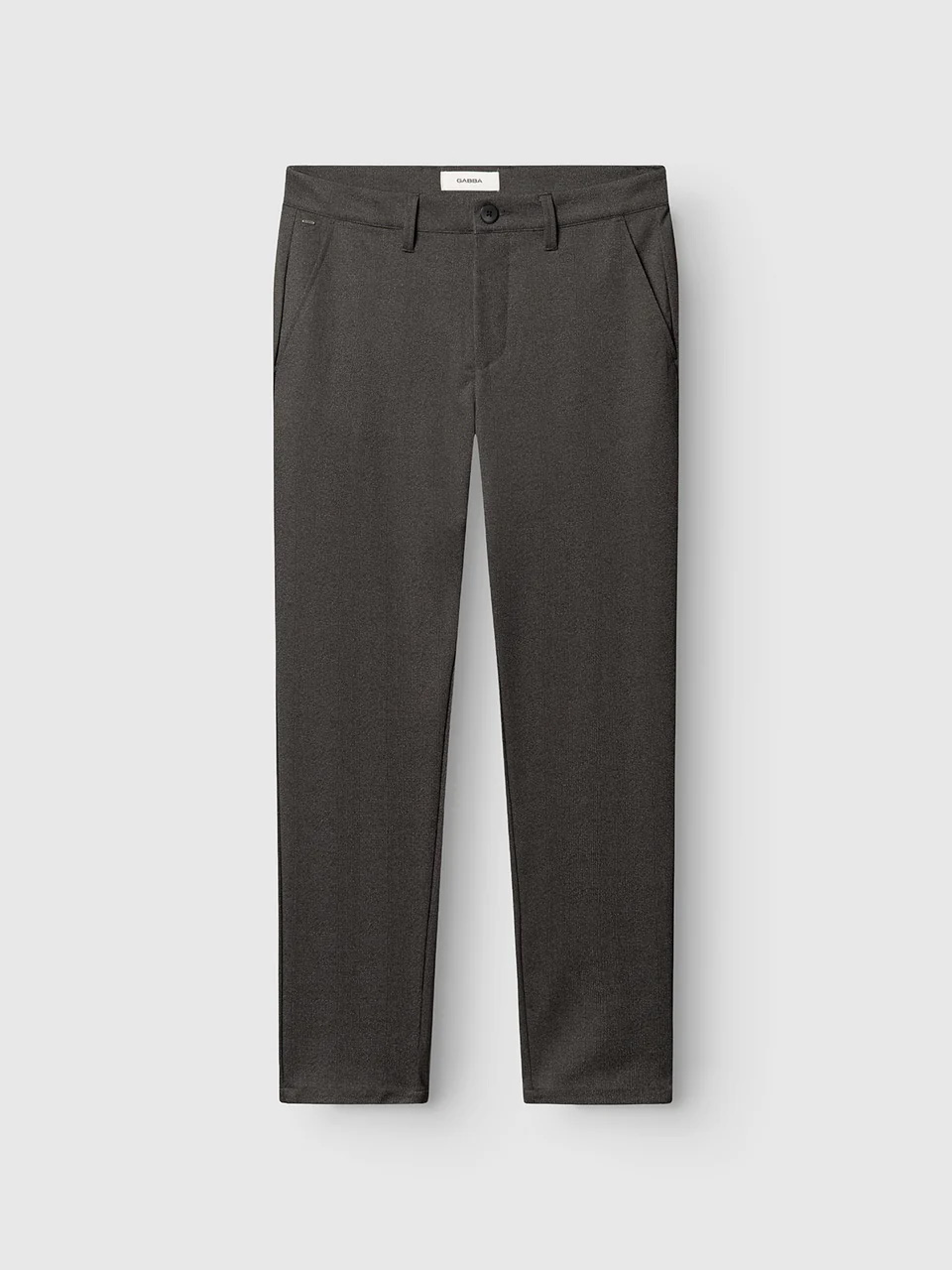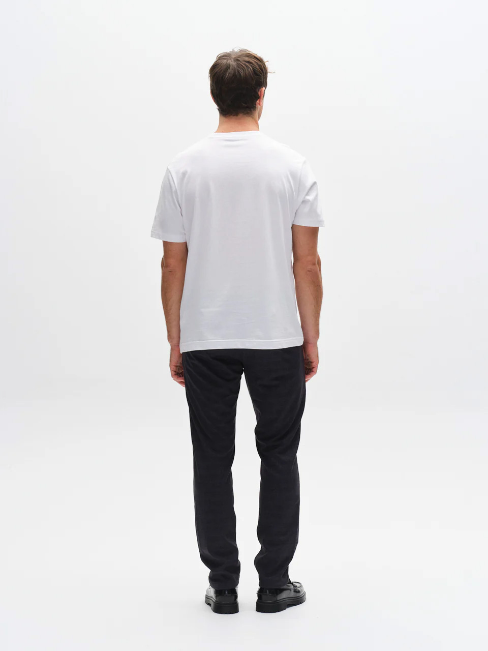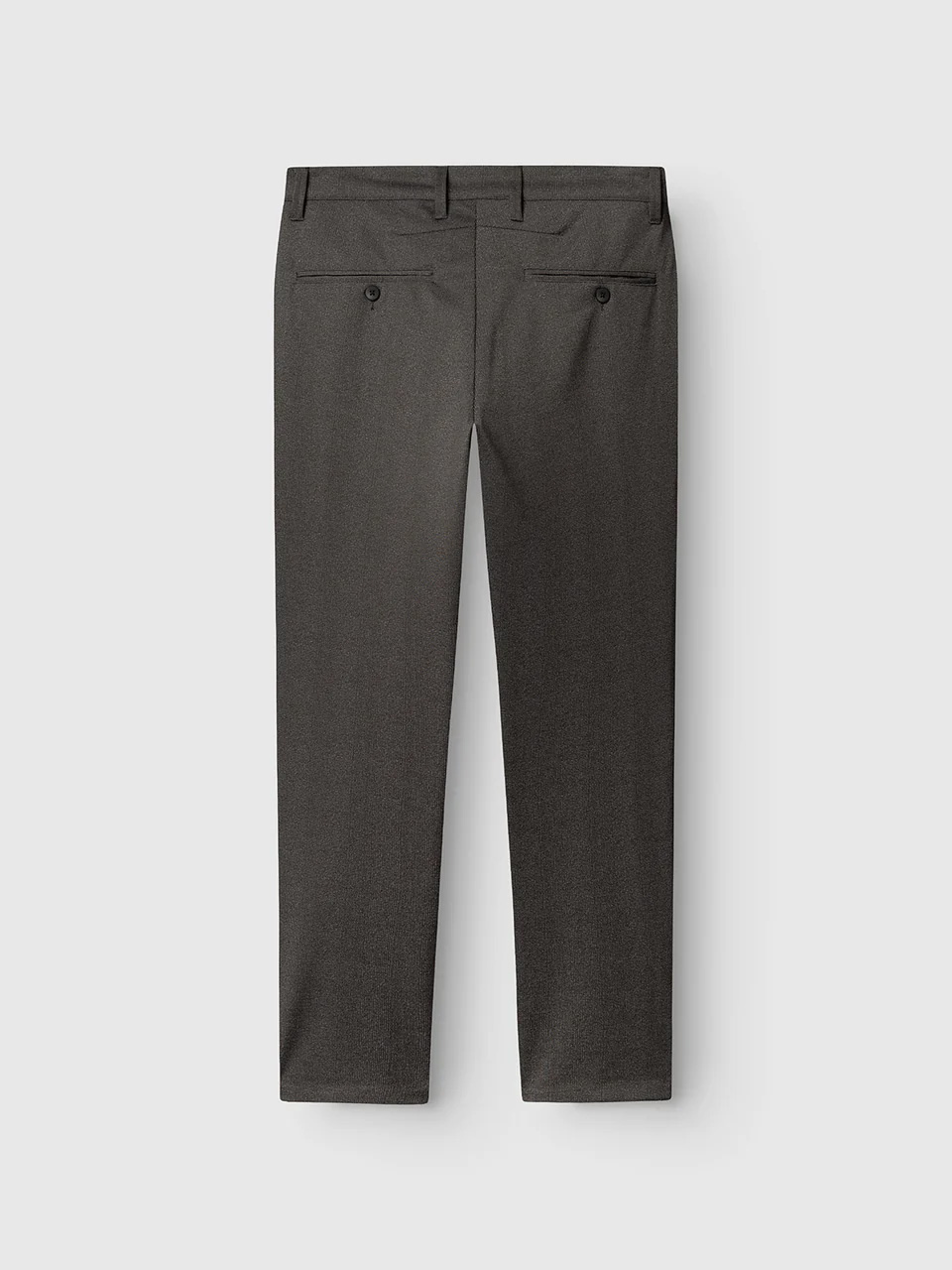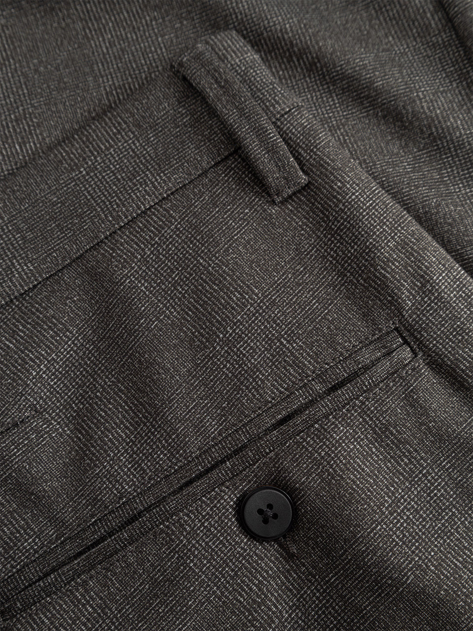 Tailored trousers featuring a slim, streamlined fit with front pleats and belt loops. The trousers include side slip pockets and button-secured welt pockets at the back.