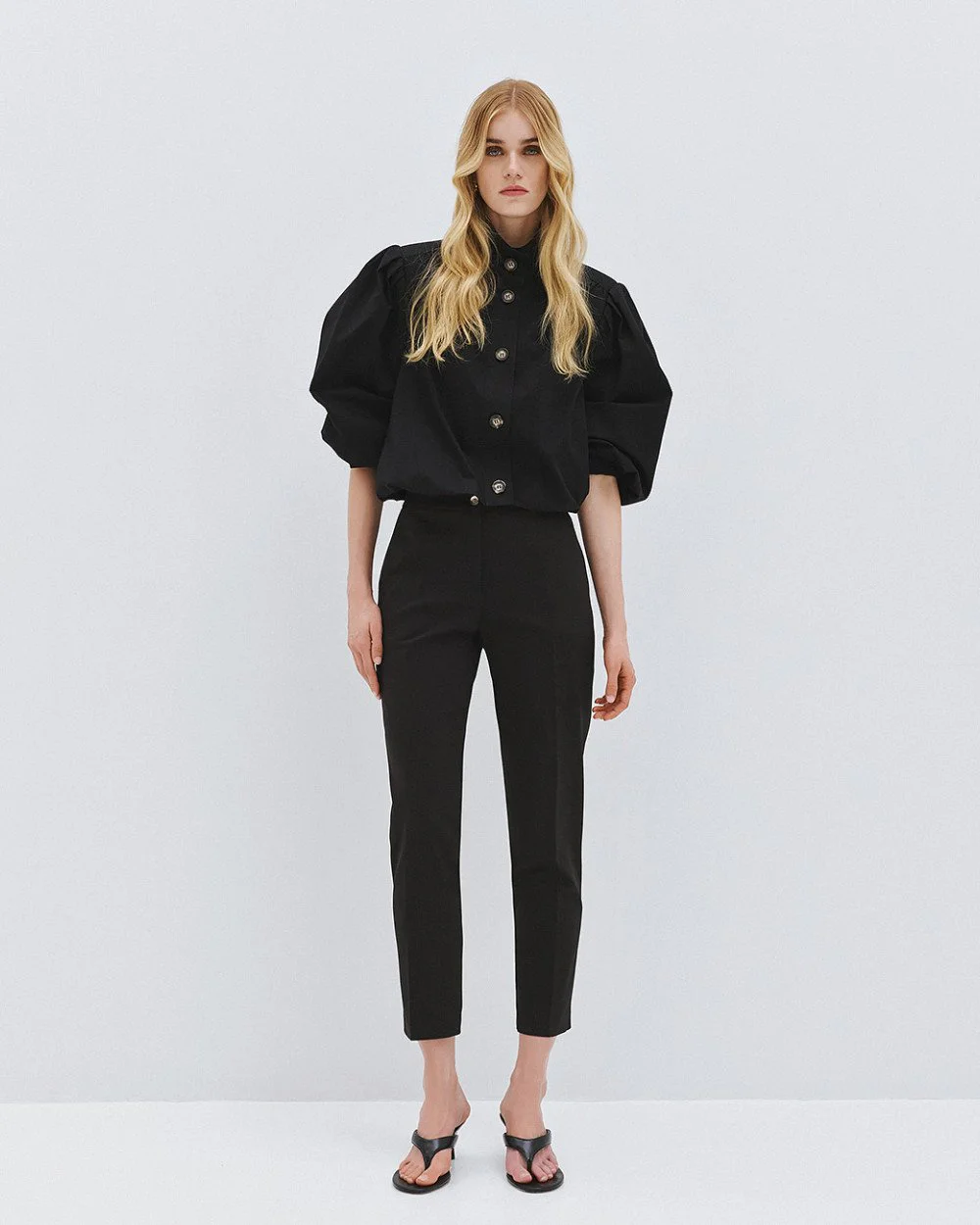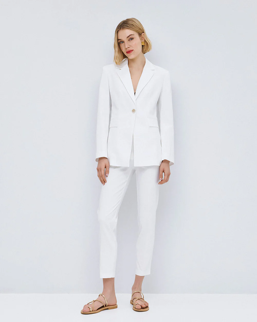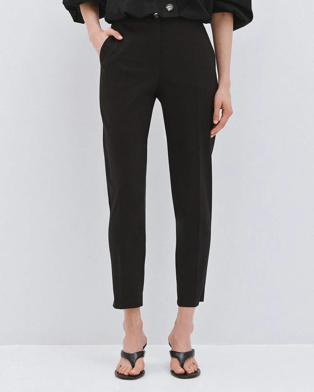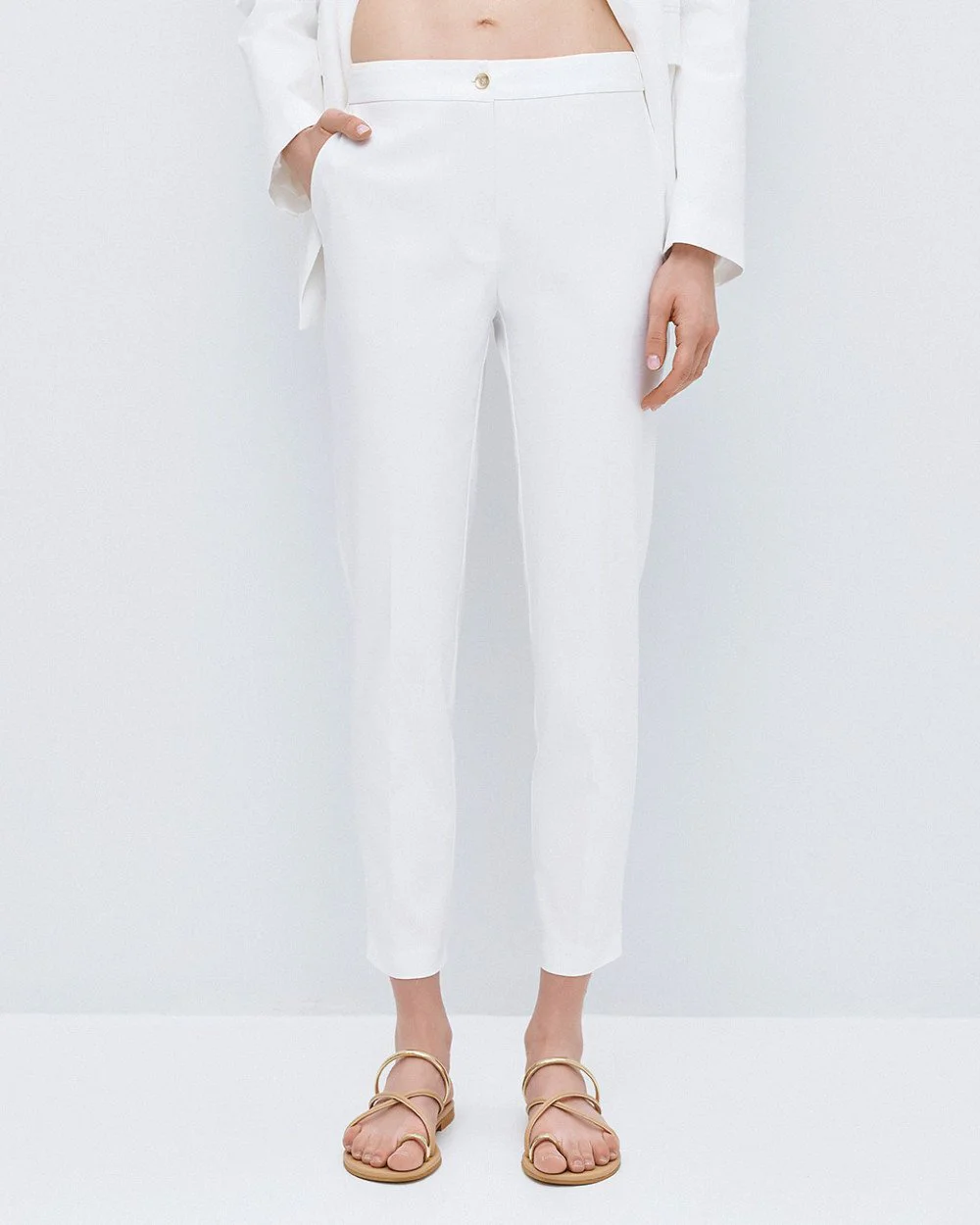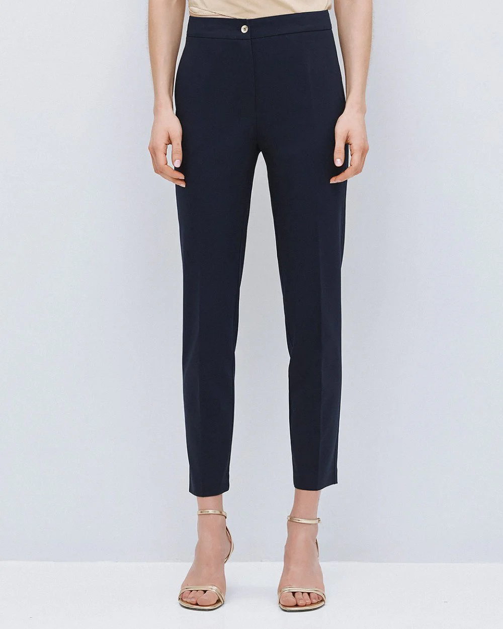 Straight-leg pants with side pockets and a front zip and button closure from Access Fashion