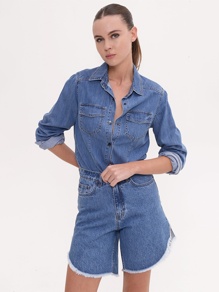 A timeless denim shirt with a feminine, slightly fitted silhouette from Sac & Co. Soft fabric and classic western details make it versatile for both everyday and polished looks.