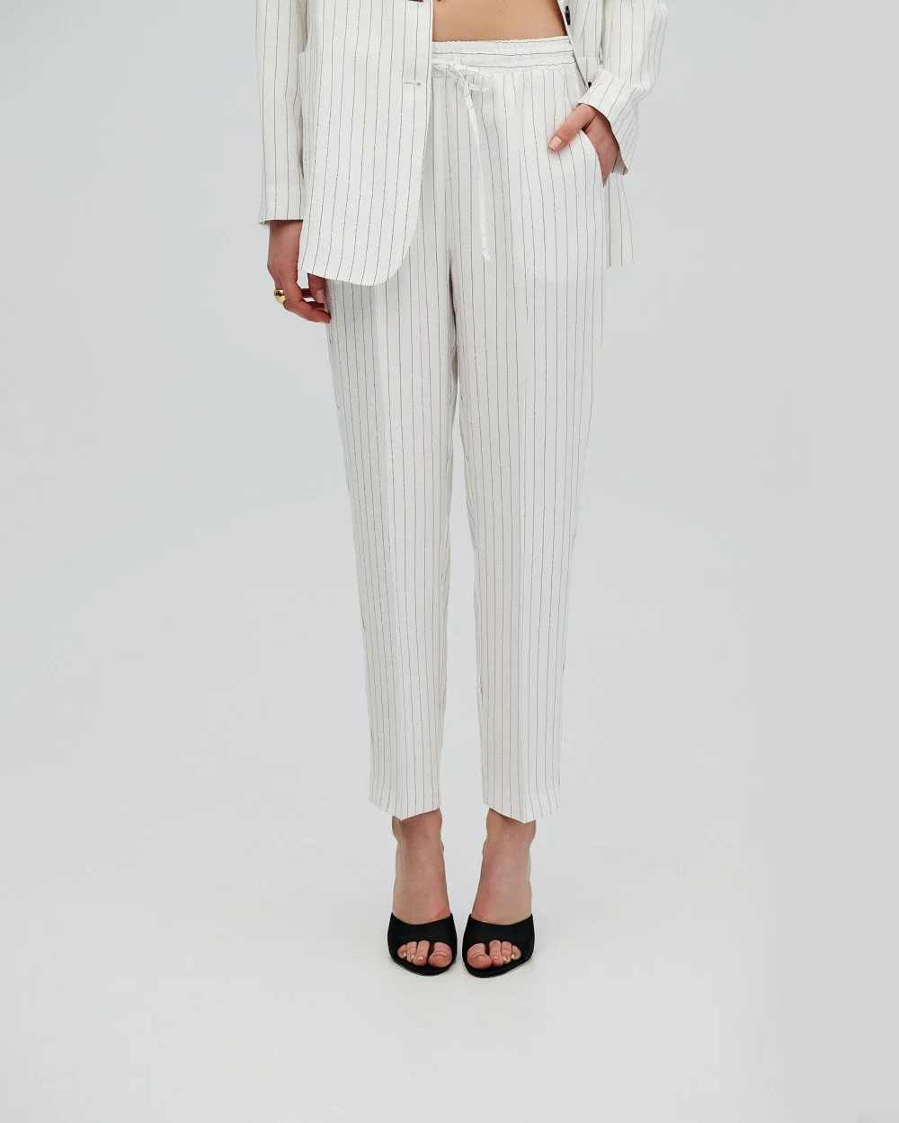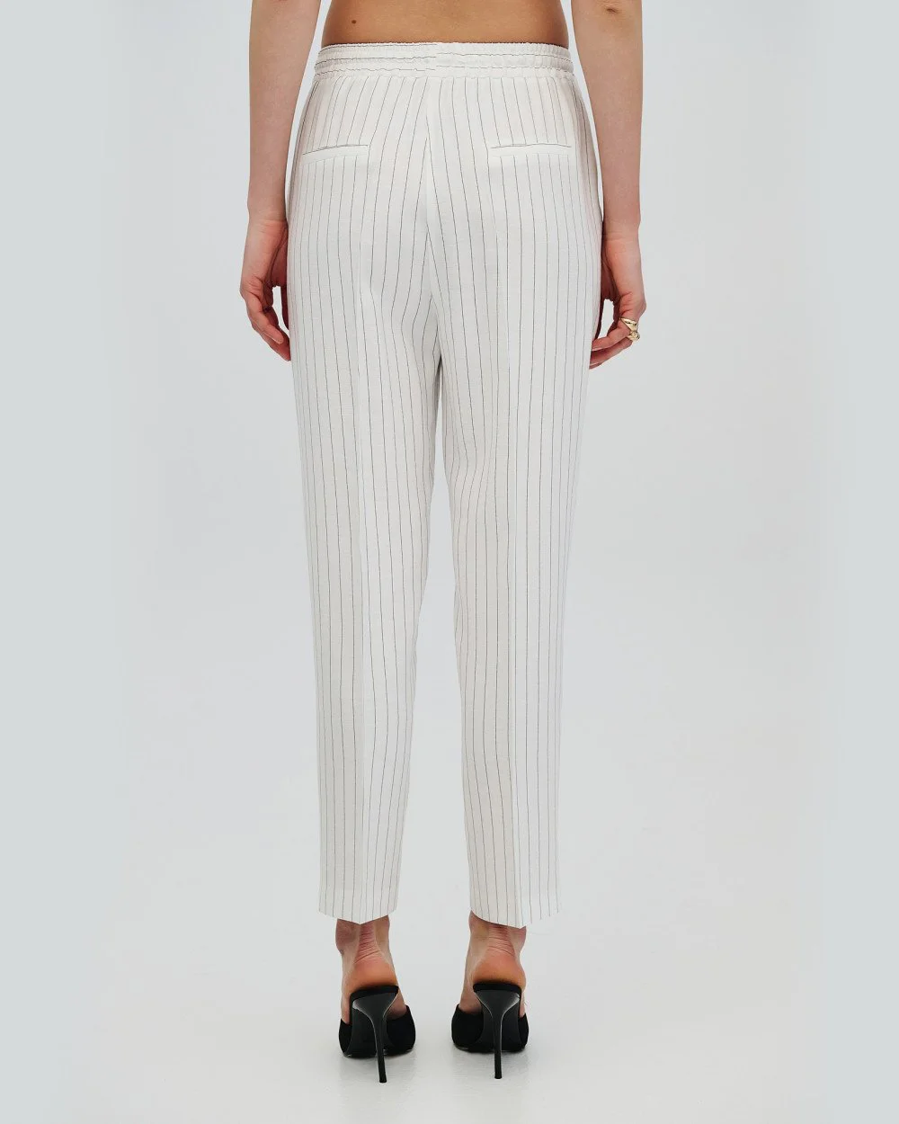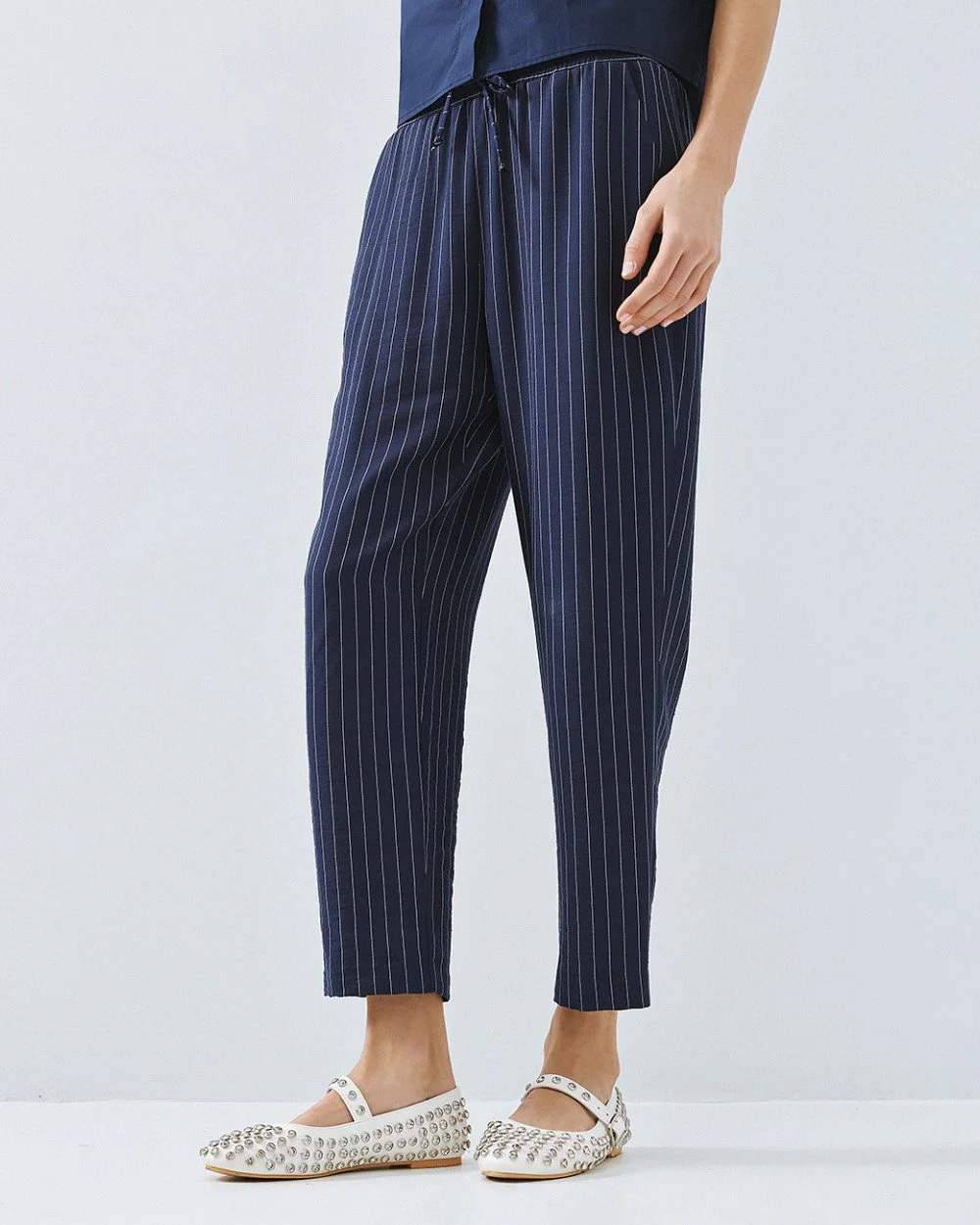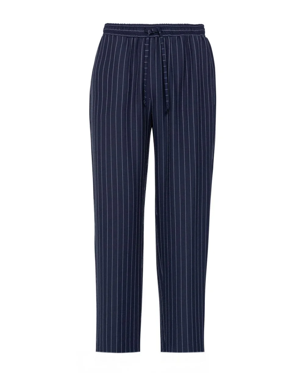 Striped pants with an elasticated waistband and drawstring from Access Fashion. Feature side pockets and decorative welt pockets at the back.
