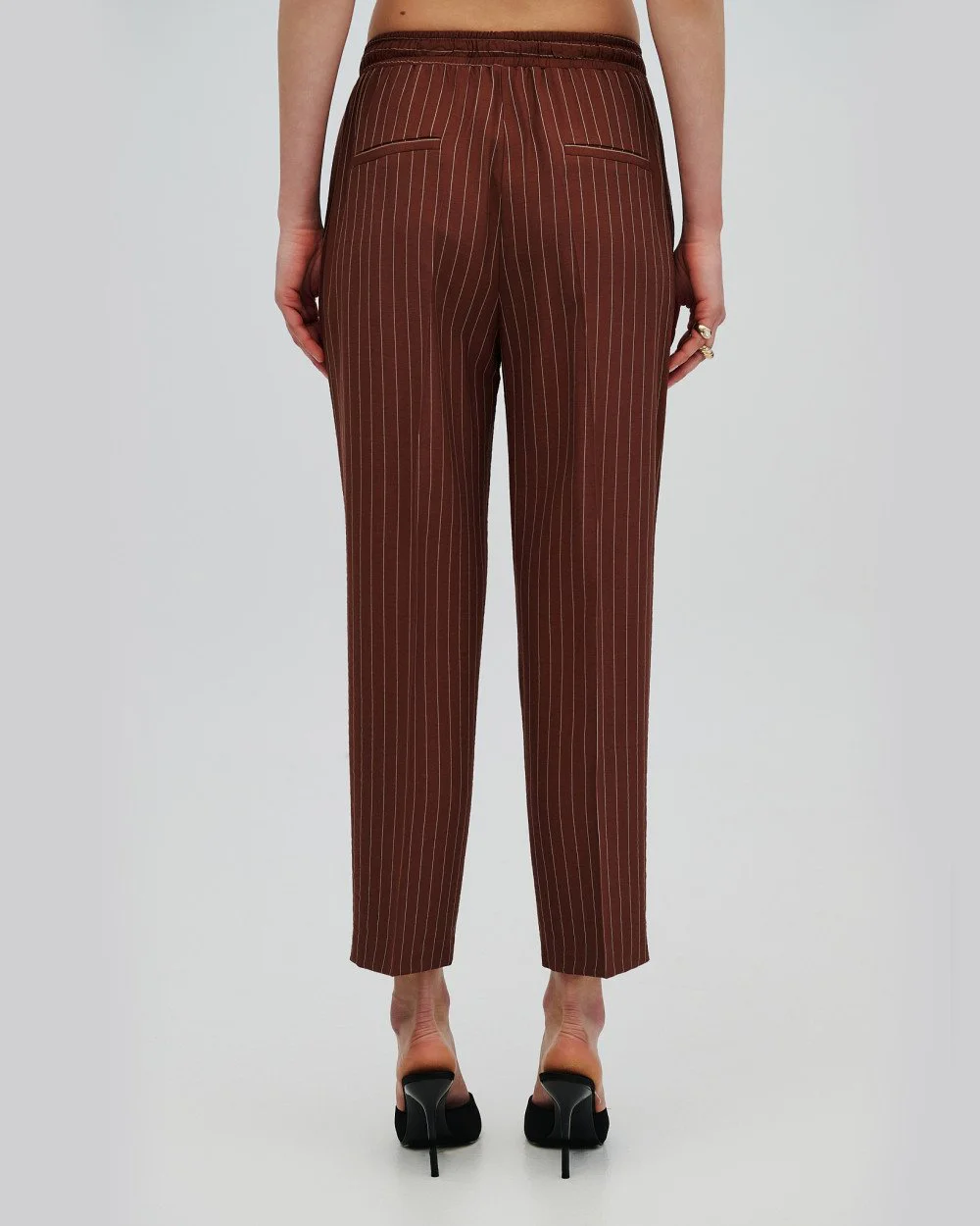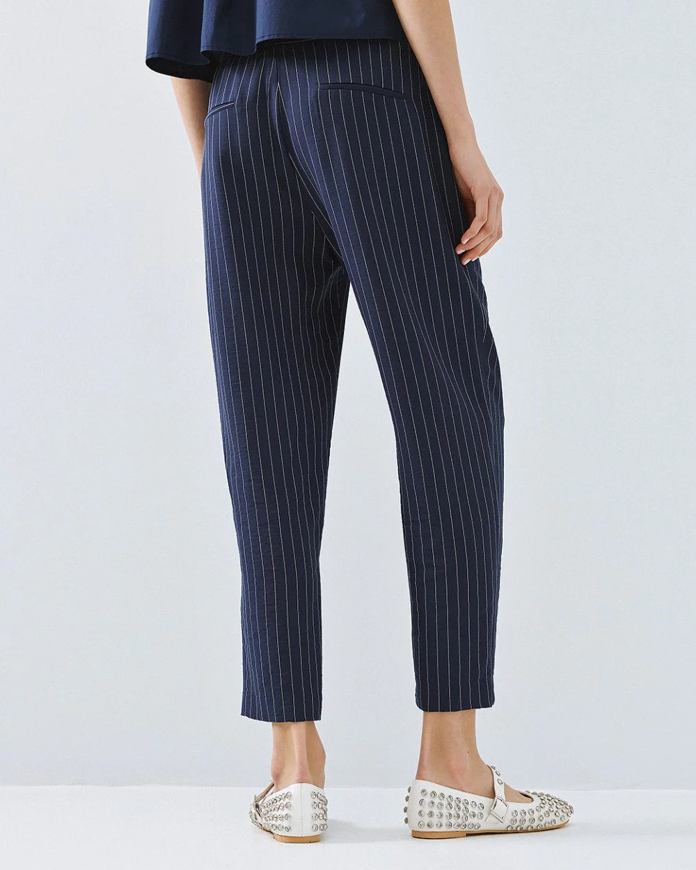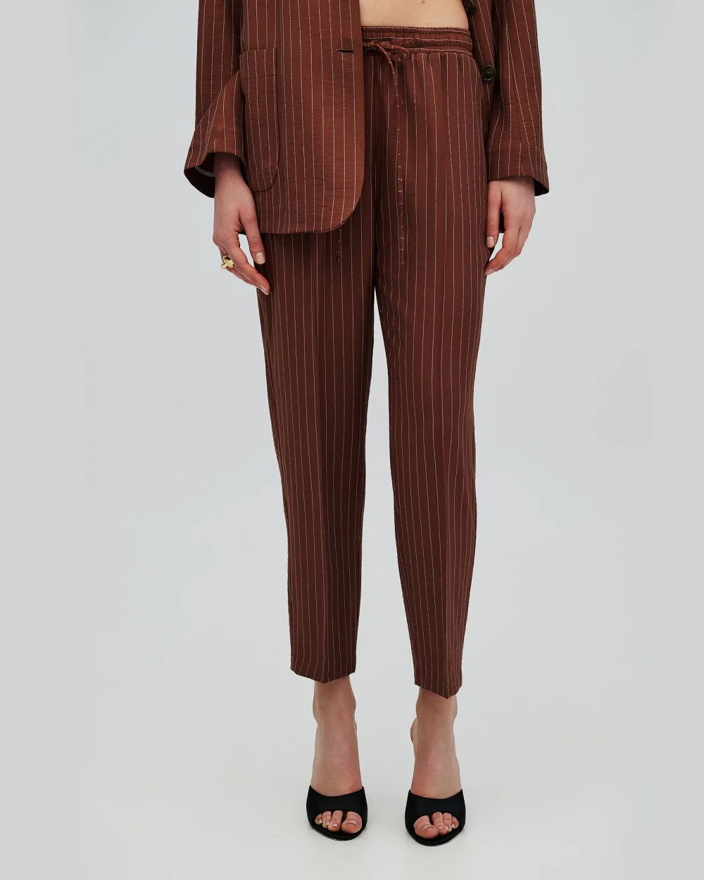 Striped pants with an elasticated waistband and drawstring from Access Fashion. Feature side pockets and decorative welt pockets at the back.