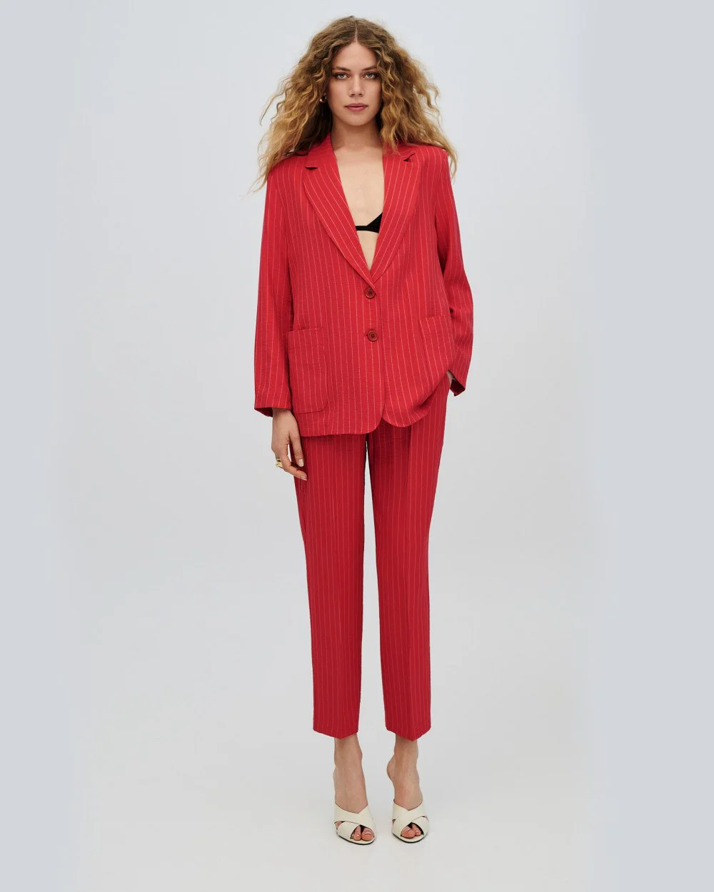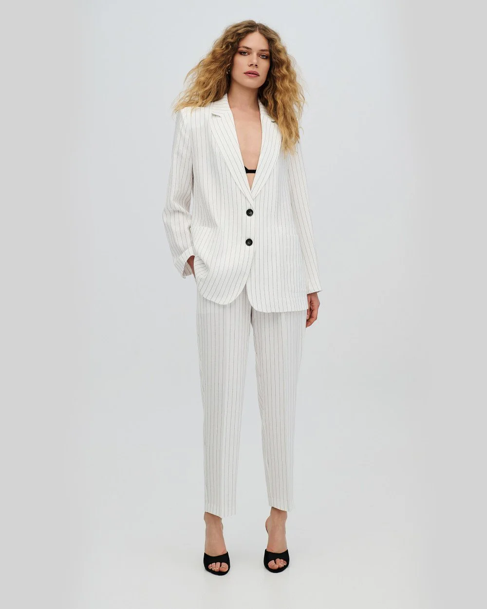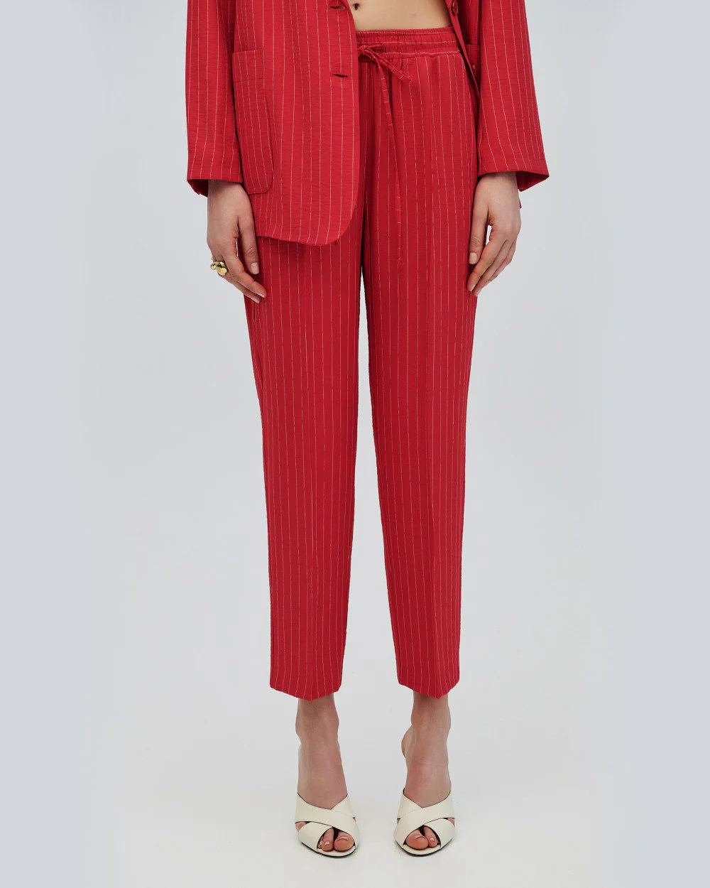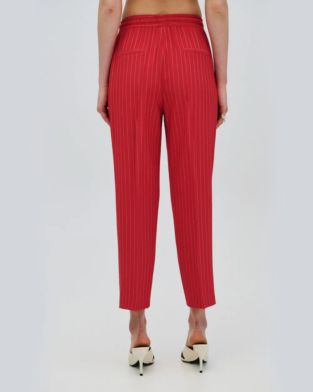 Striped pants with an elasticated waistband and drawstring from Access Fashion. Feature side pockets and decorative welt pockets at the back.