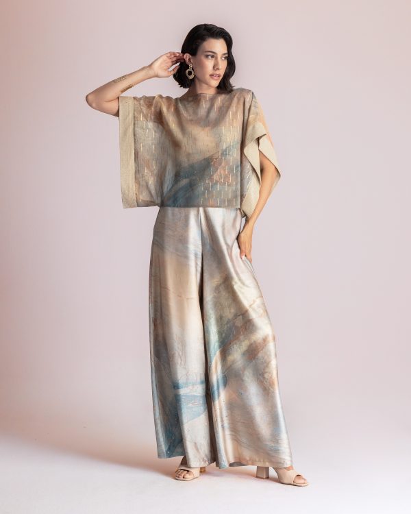 Sheer longline kimono with abstractp print – Moutaki
