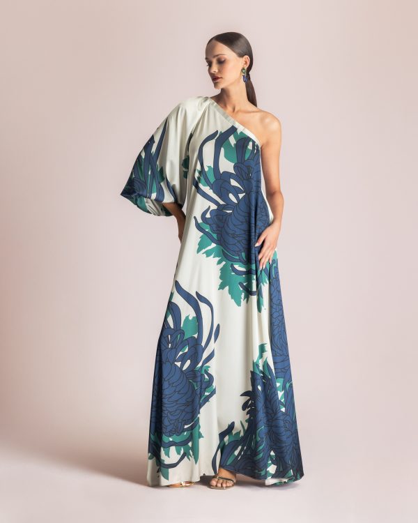 Asymmetric midi dress with abstract print – Moutaki