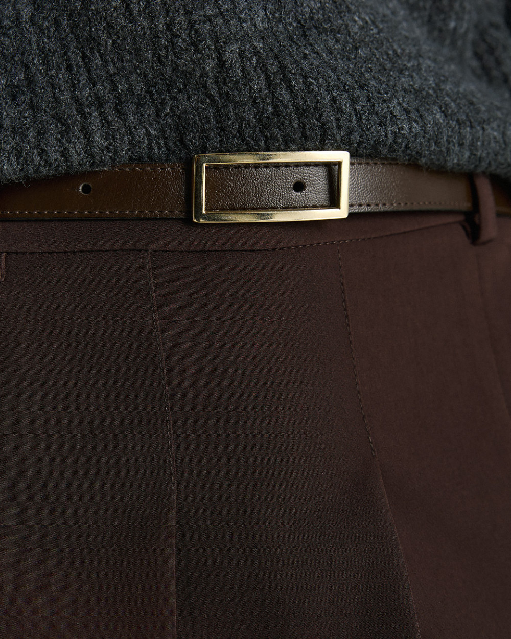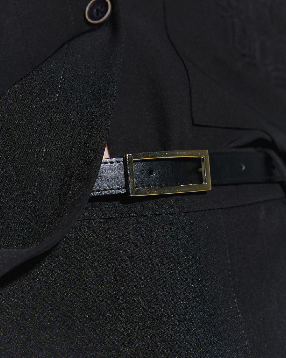 Eco leather effect belt with a rectangular metallic buckle. Choose it to complete your looks.