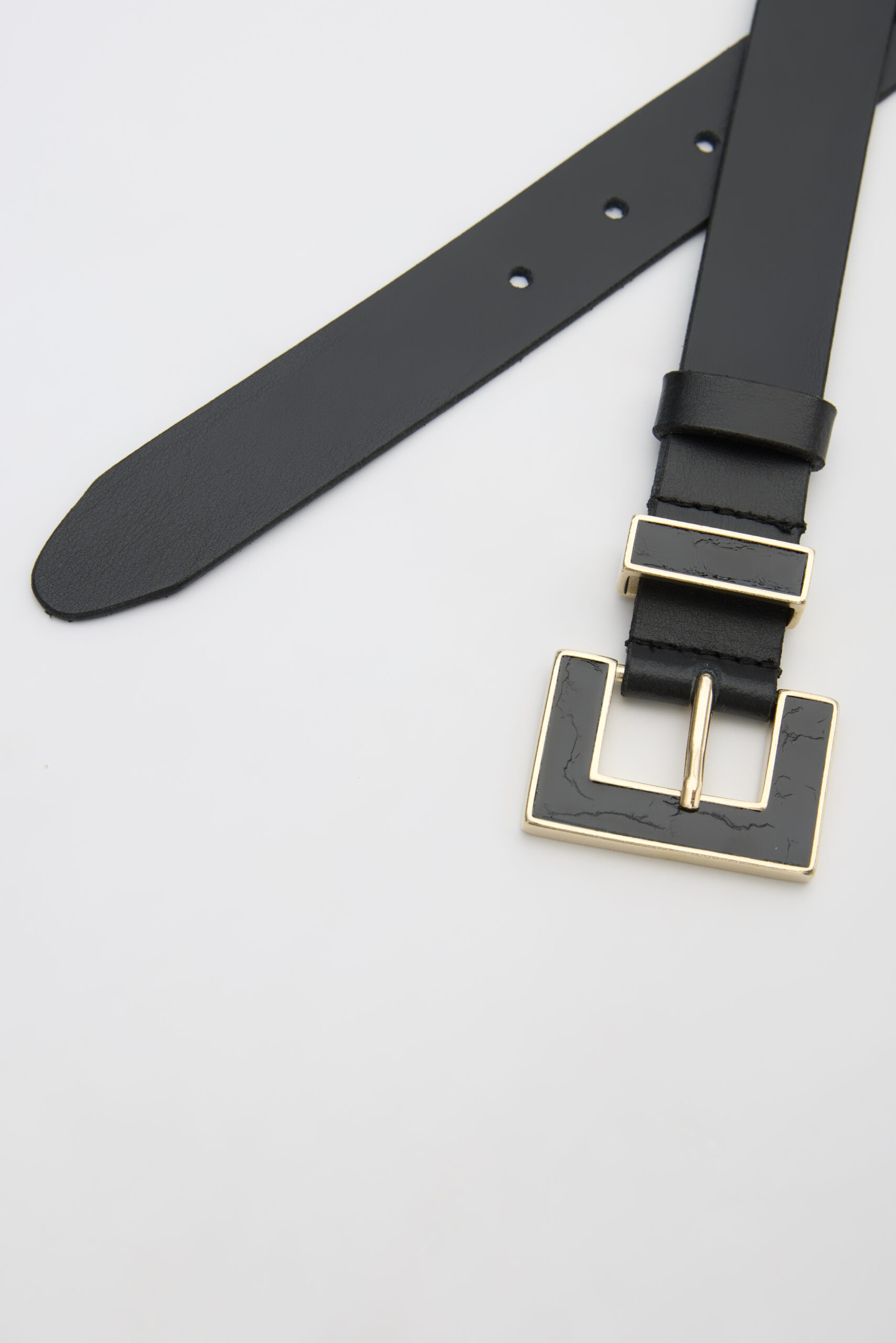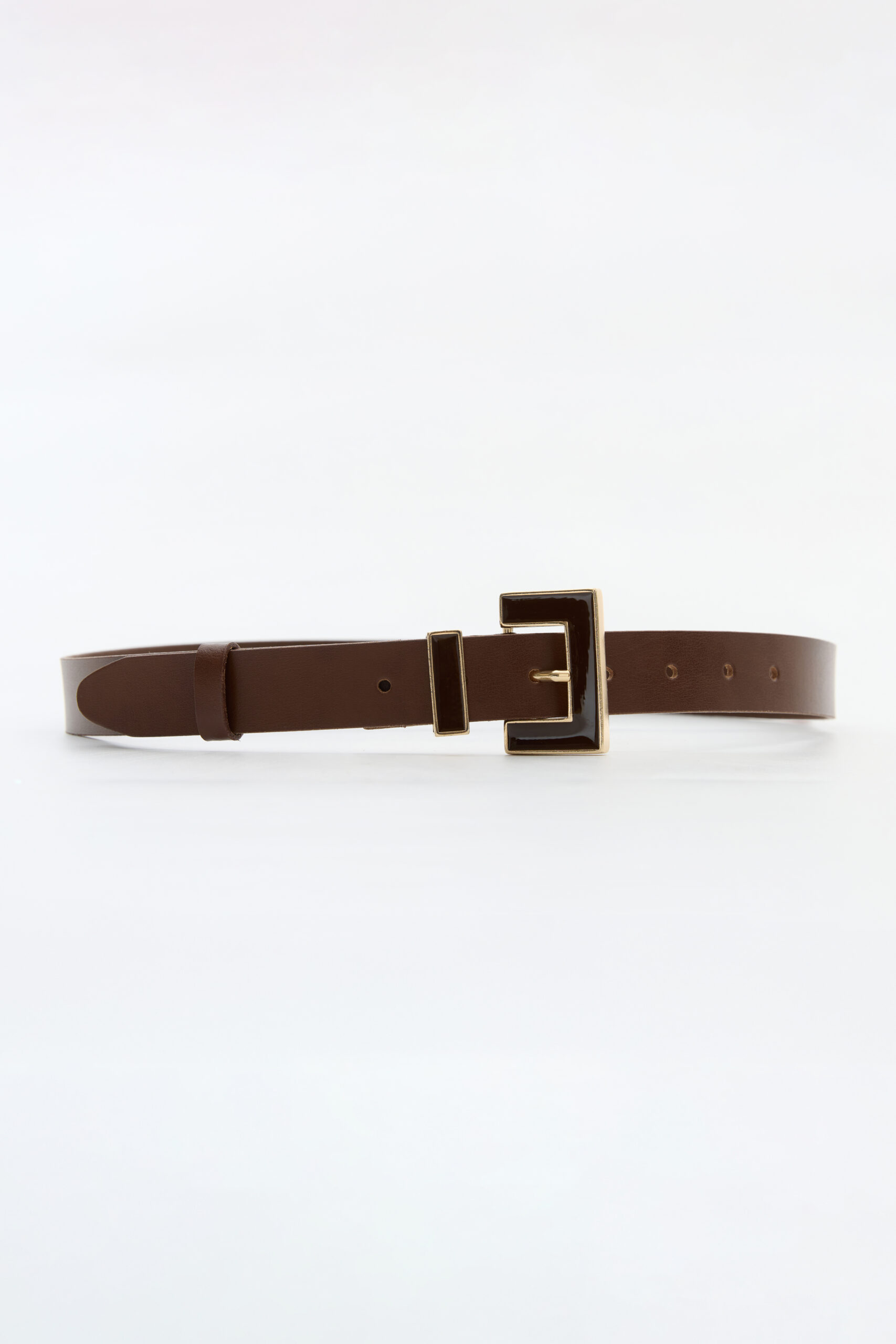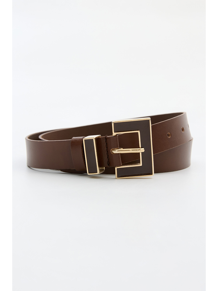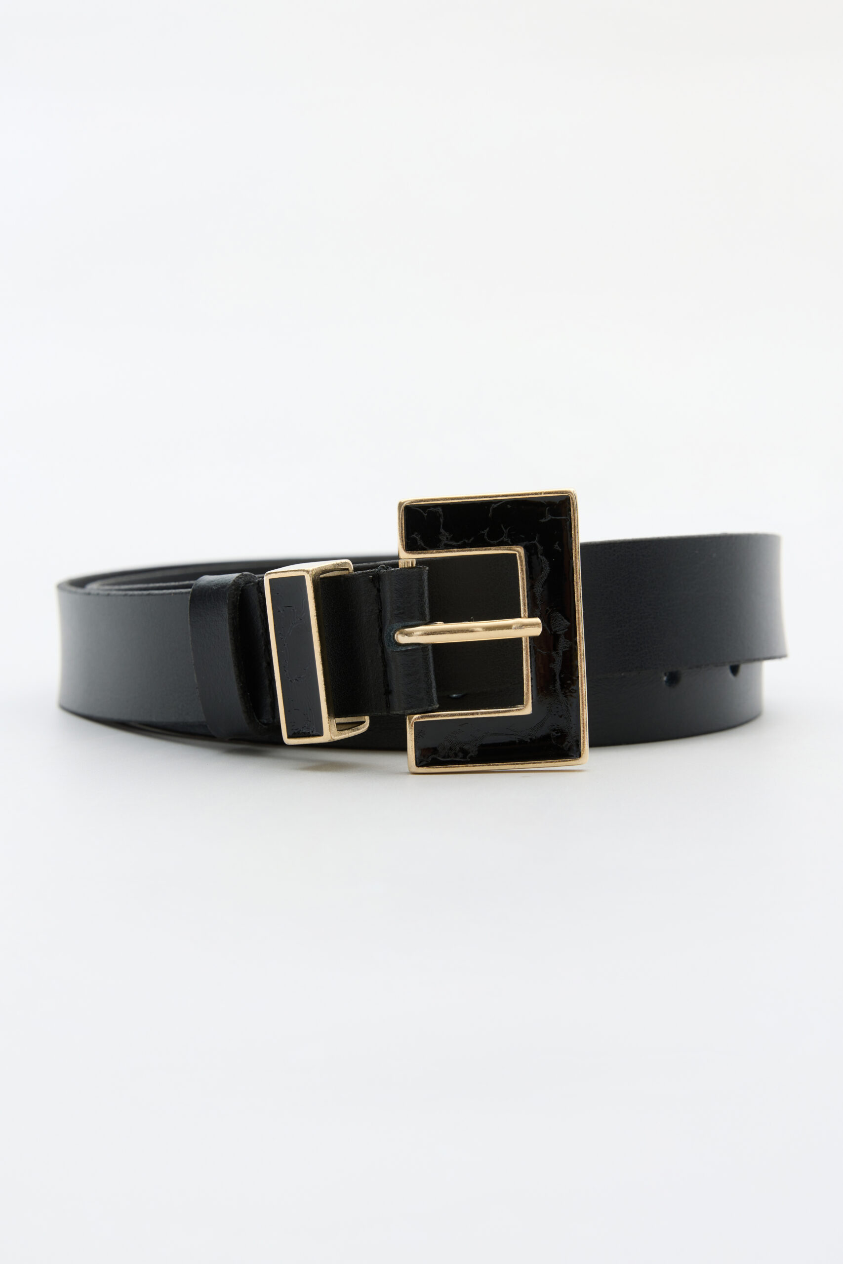 This handcrafted leather belt made from premium Italian leather, it offers a smooth finish. The minimal silhouette is enhanced by gold-tone details.