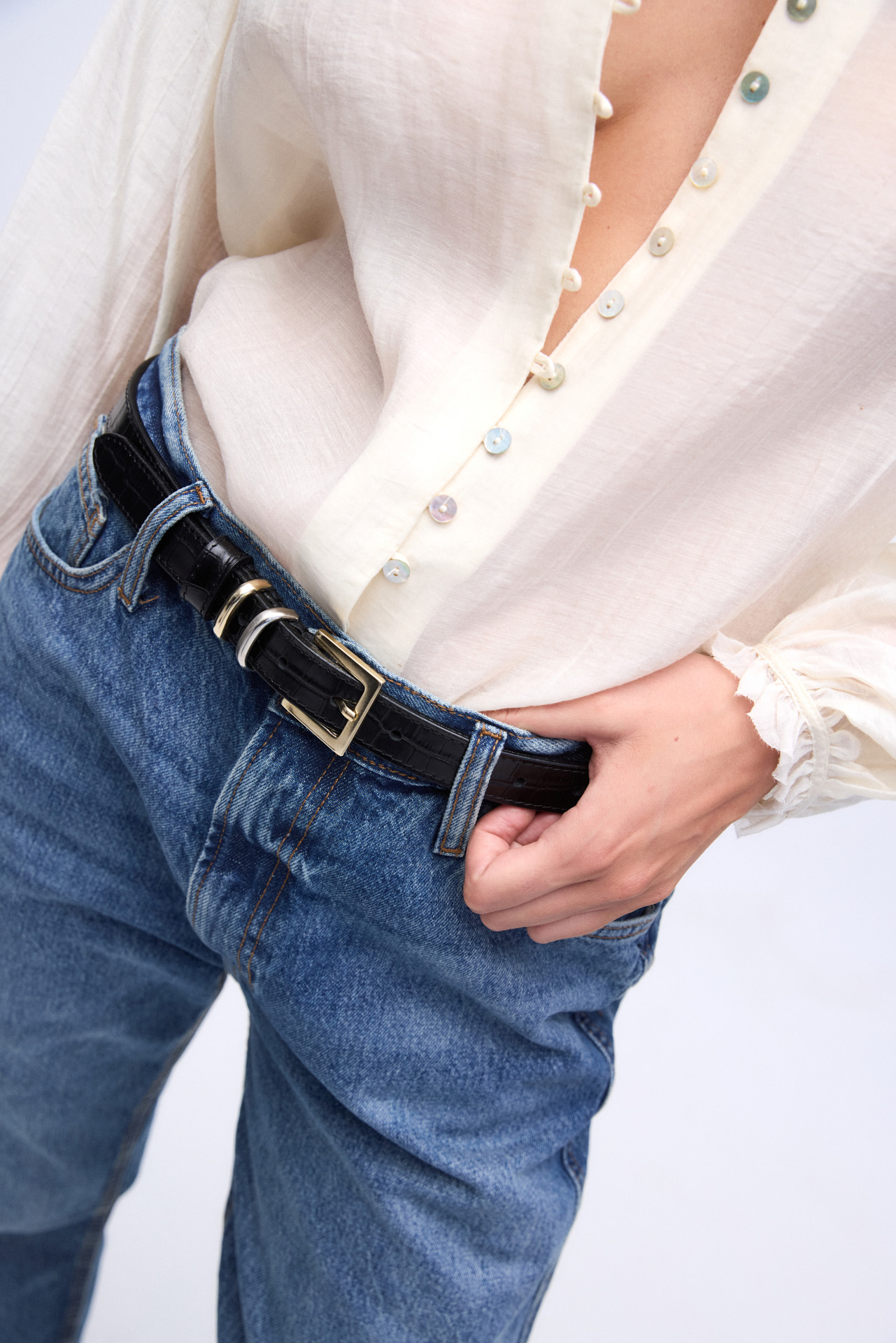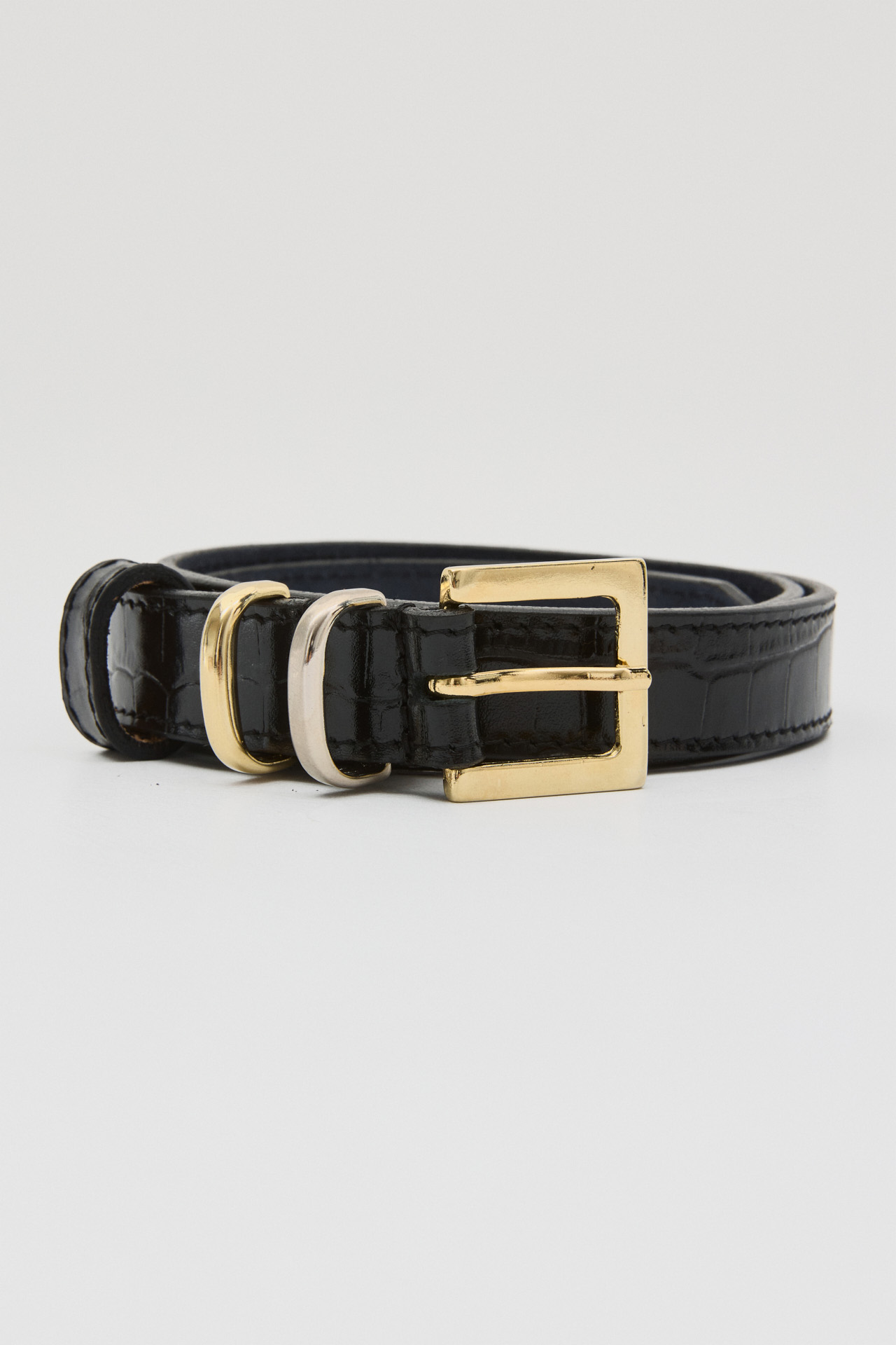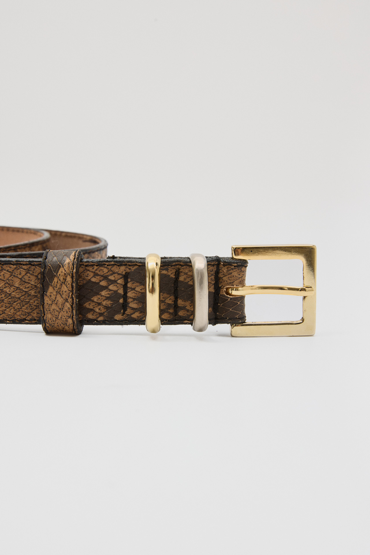 – Gold-tone buckle and metal details
