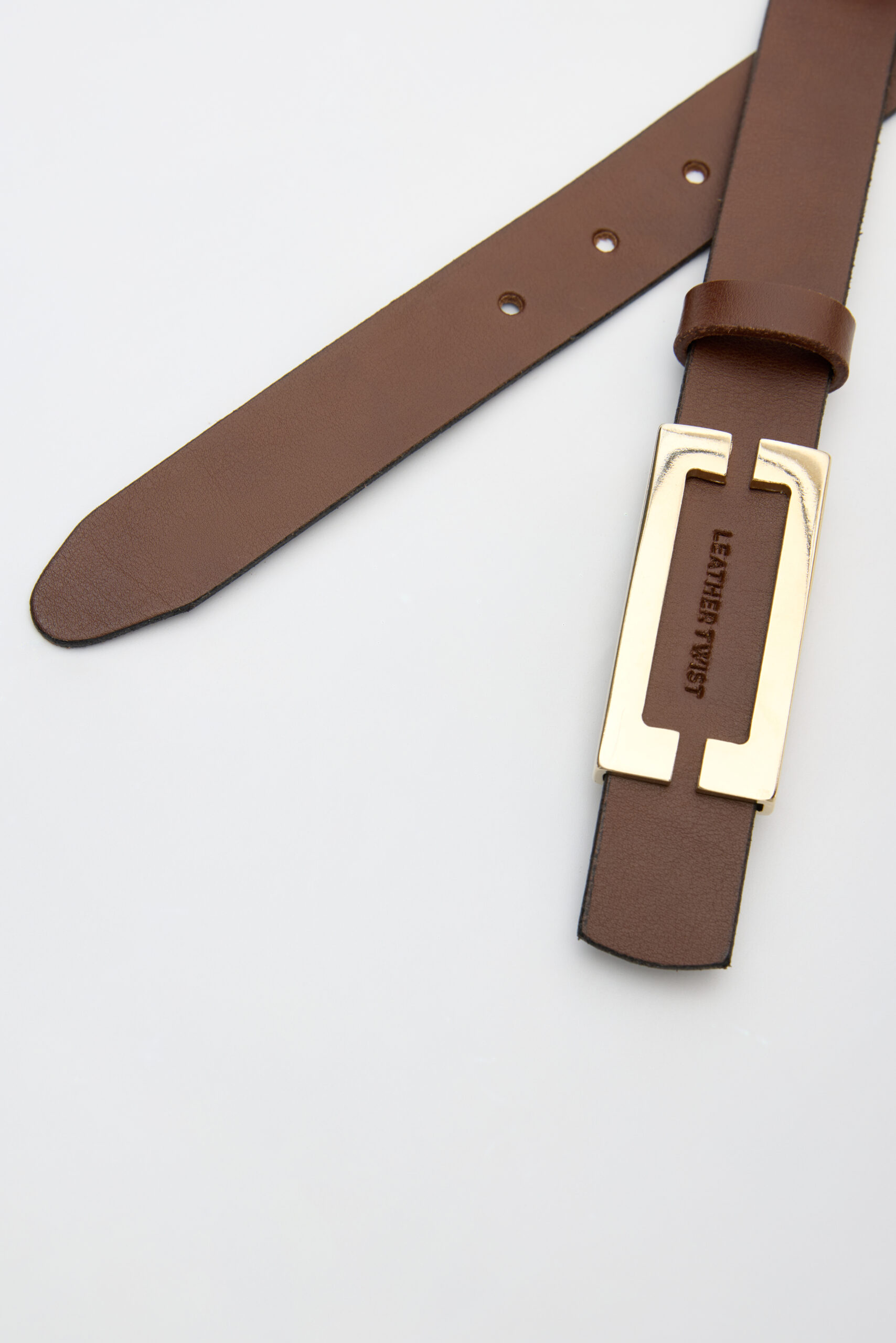 This elegant leather belt crafted from high-quality Italian leather, its slim 3 cm width while the gold-tone buckle adds eye-catching touch that elevates even the simplest outfits.