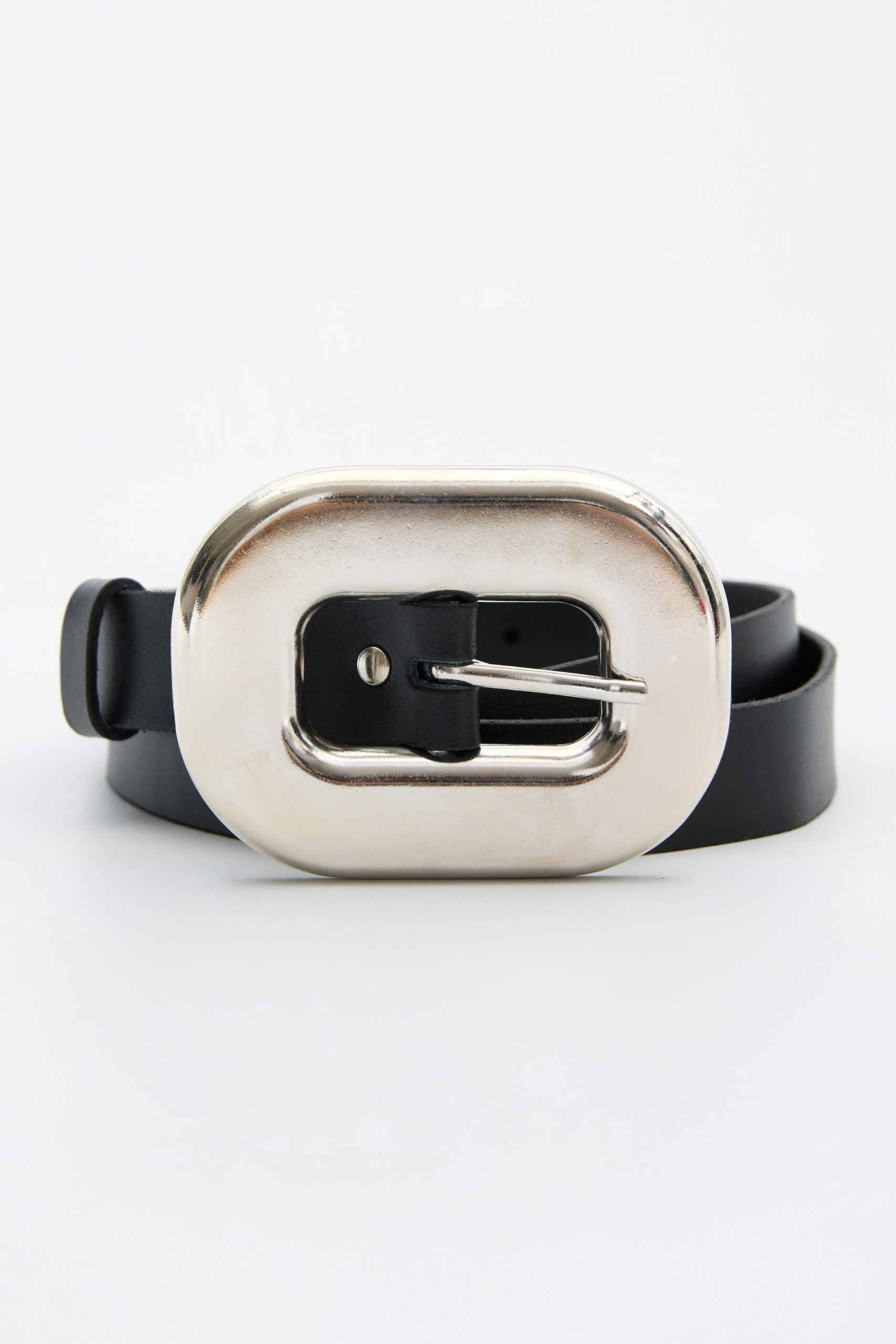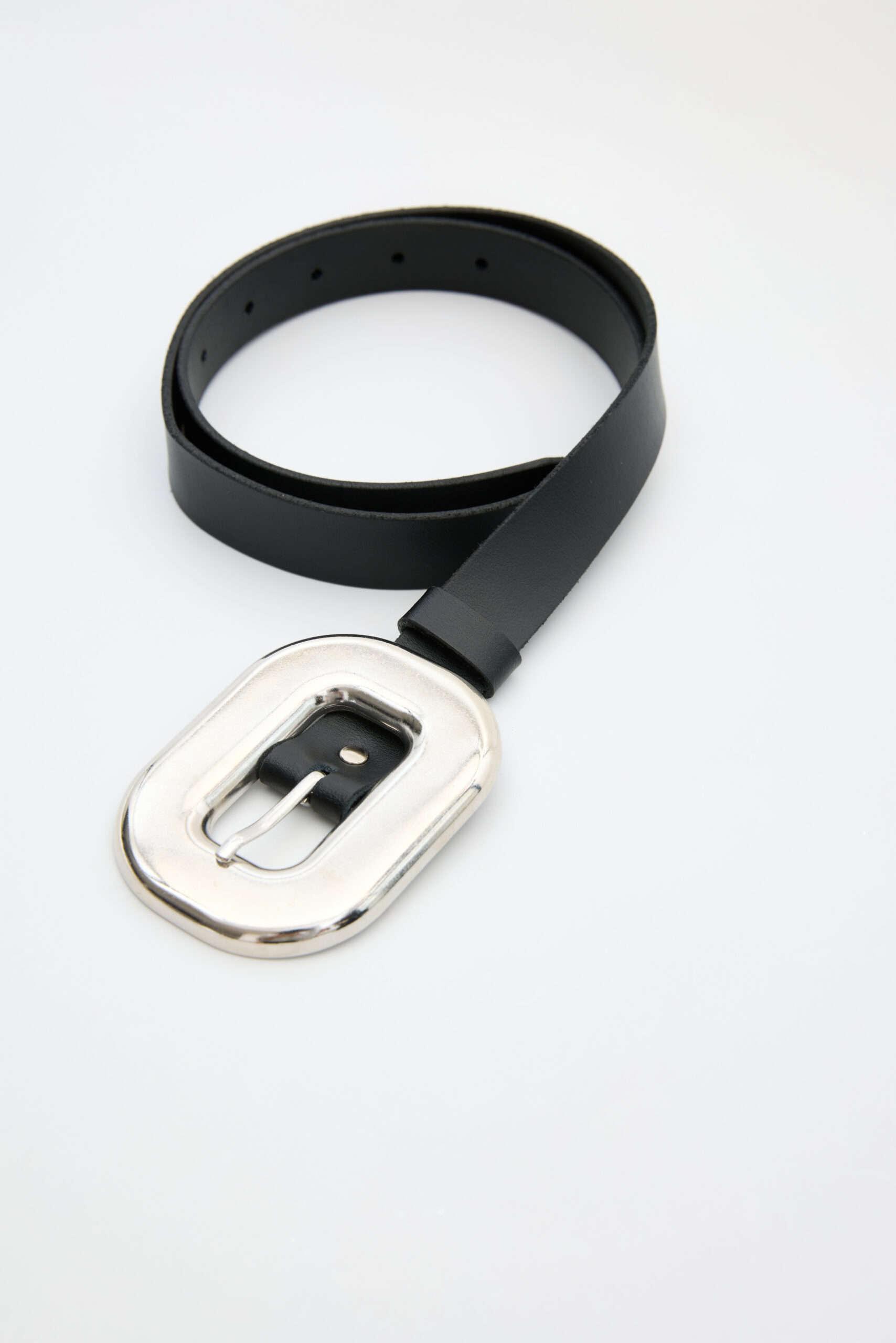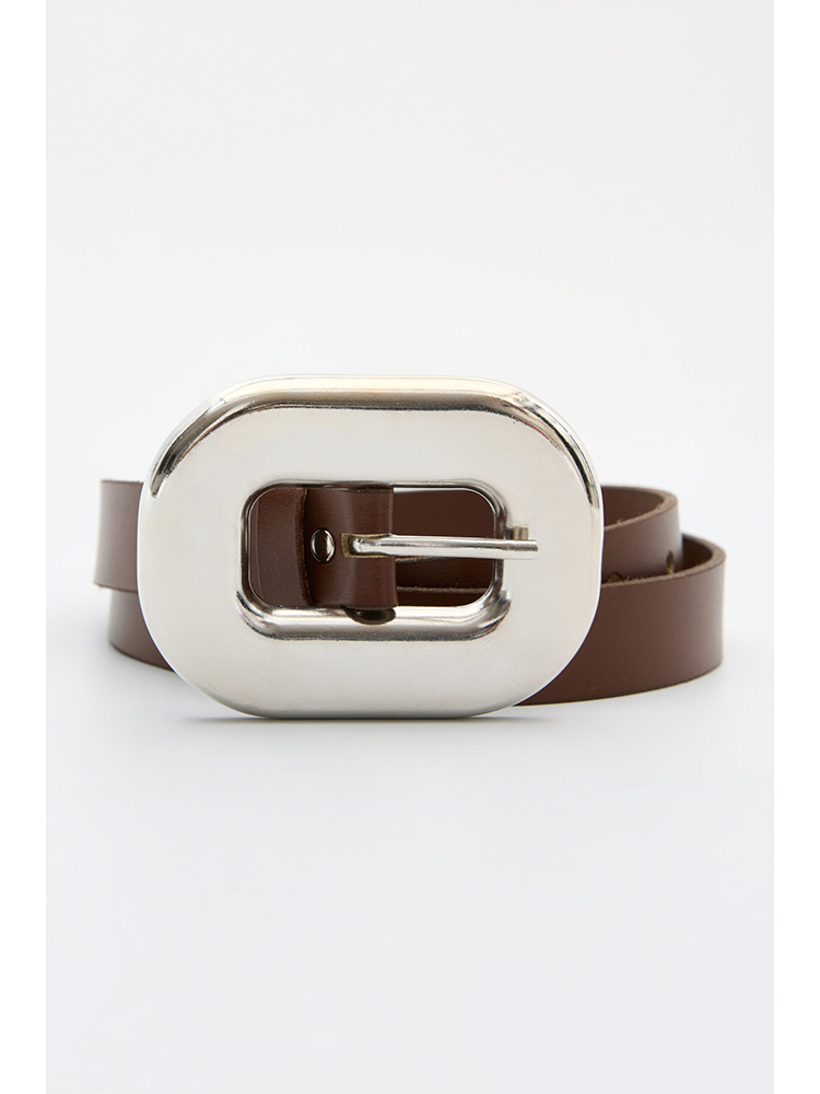 This Oval leather belt crafted from premium Italian leather, it offers a smooth texture. The 2.5 cm width makes it ideal for both trousers and high-waisted styling, while the bold oval silver-tone buckle adds a modern touch to everyday looks.