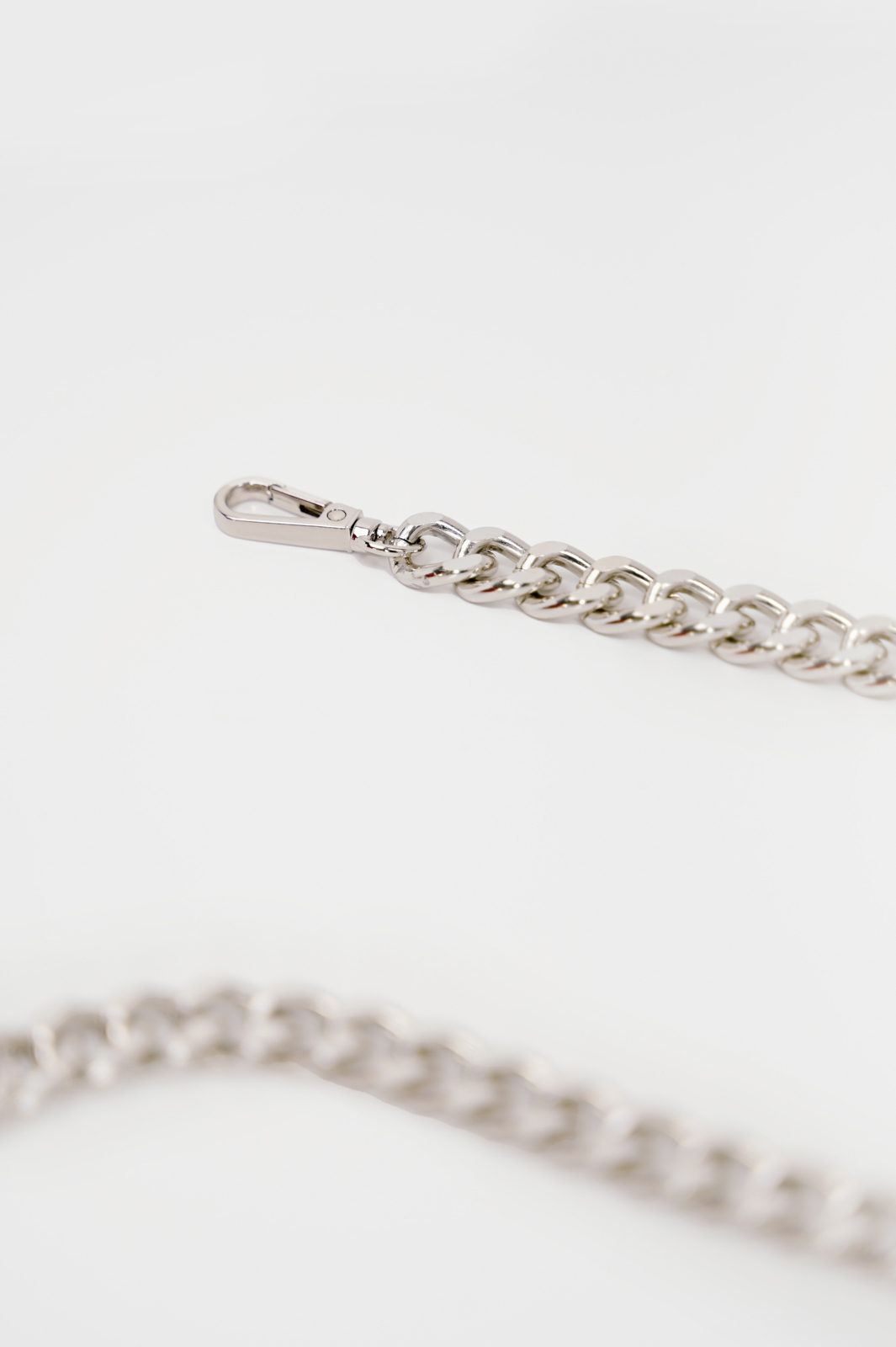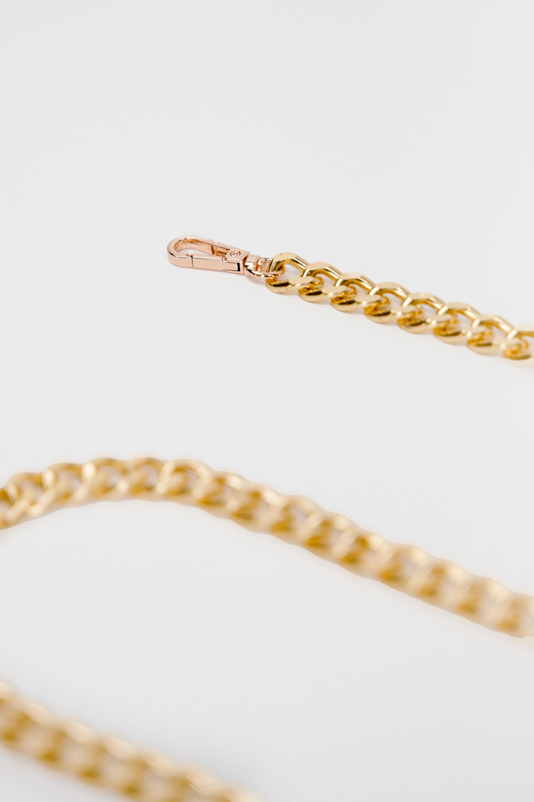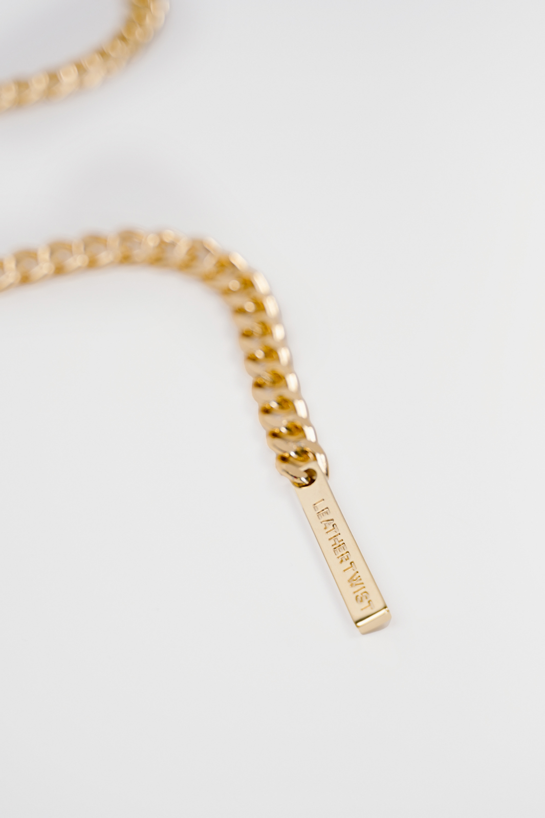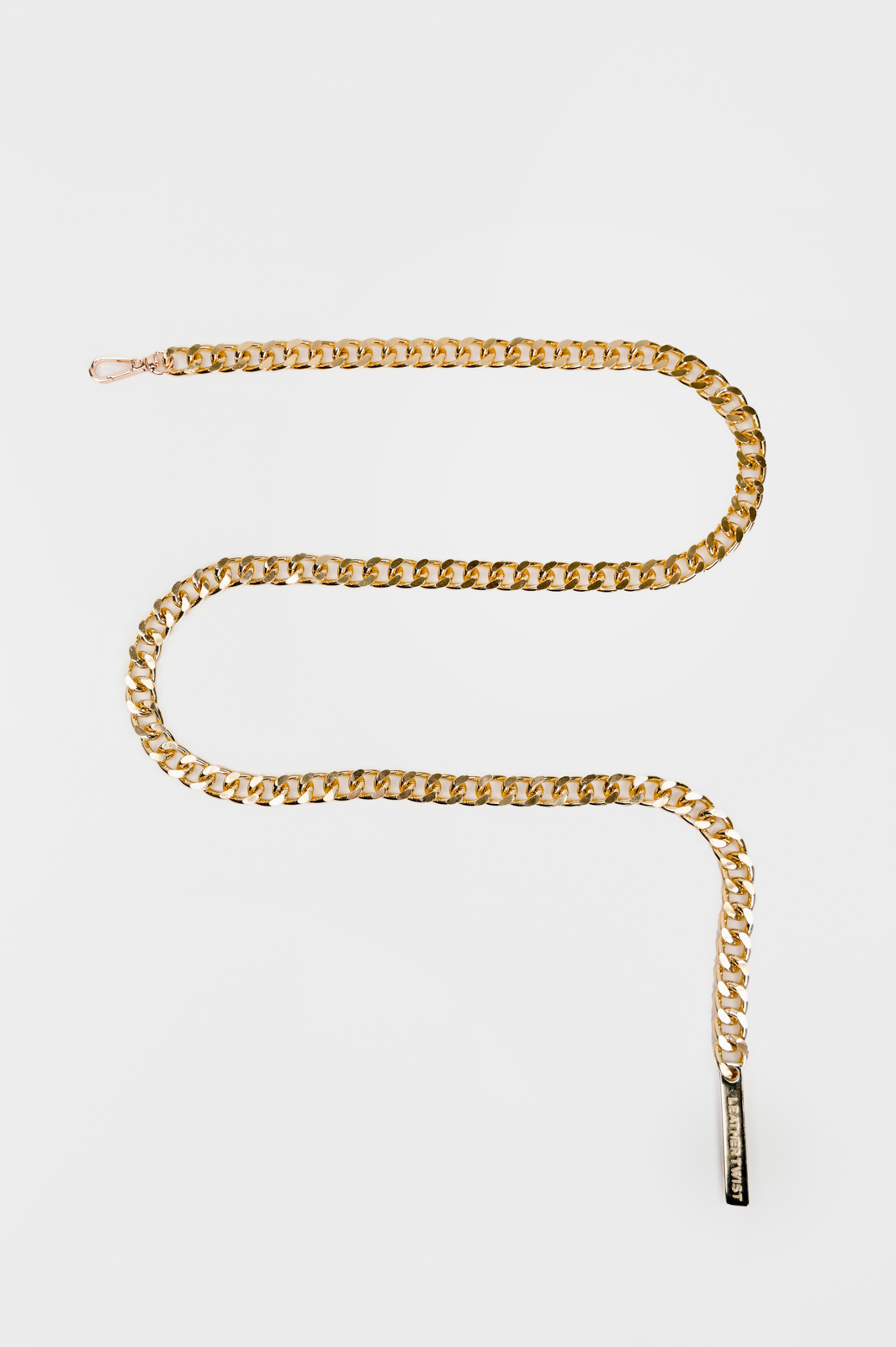 This Twist chain belt is a striking statement accessory crafted from high-quality processed aluminum, it features a bold gold chain design. The adjustable hook closure ensures a perfect fit for all body types.