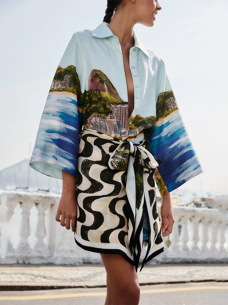 Wrap yourself in the vibrant spirit of Rio with the Multicolor Copacabana Beach Euroflax™ Premium Linen Long Sleeve Kimono. Crafted from breathable, eco-friendly Euroflax™ linen, its relaxed silhouette flows effortlessly with every movement. The playful collar neckline and vivid multicolor pattern bring warmth and joy, while the soft fabric ensures cool comfort. This kimono captures carefree beachside energy with a touch of refined, sustainable elegance.