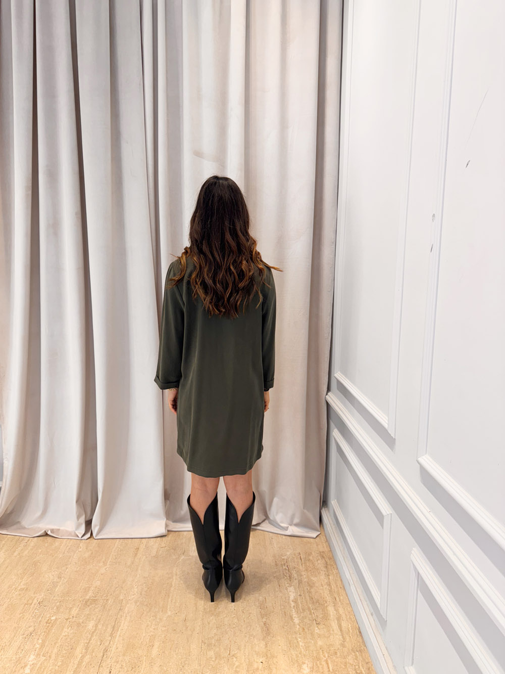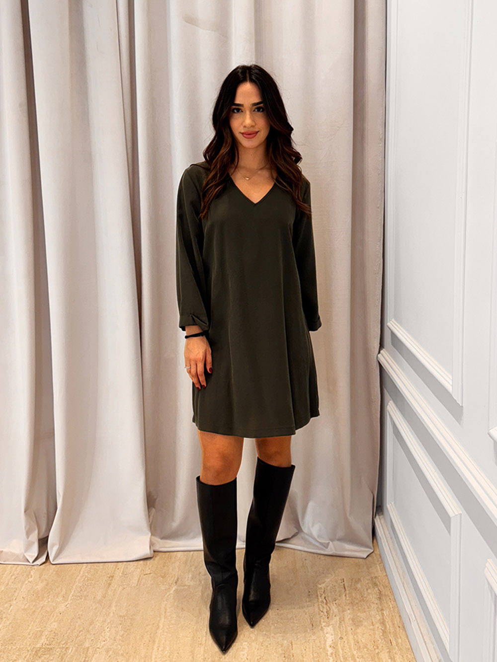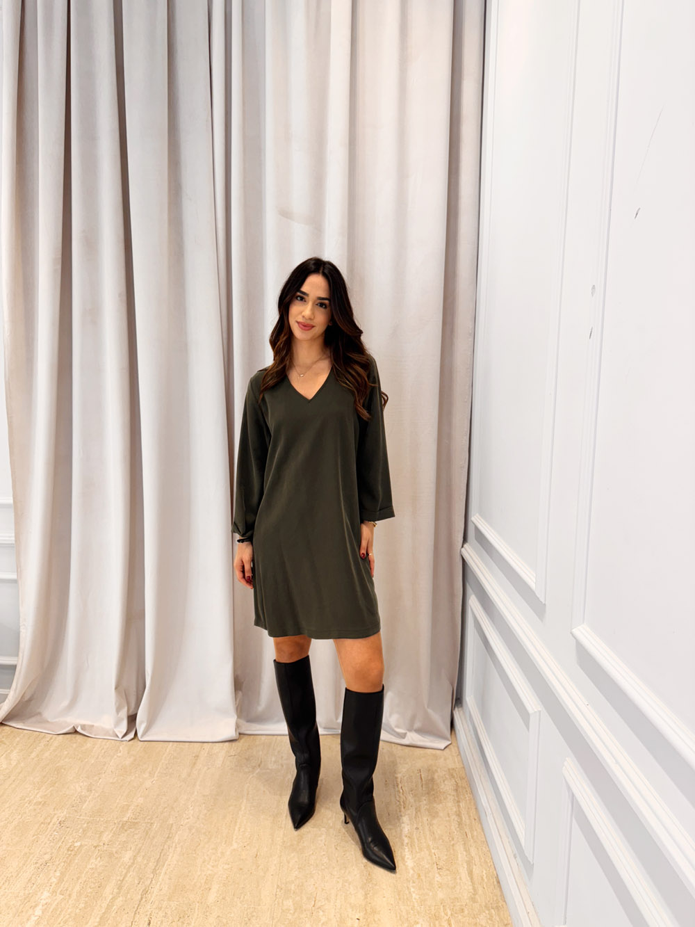 Cupro dress crafted from silky cupro fabric, it drapes beautifully over the body, creating a smooth and refined silhouette. The v-neckline and long sleeves adds a touch of femininity, while the relaxed fit allows for freedom of movement and all-day ease.