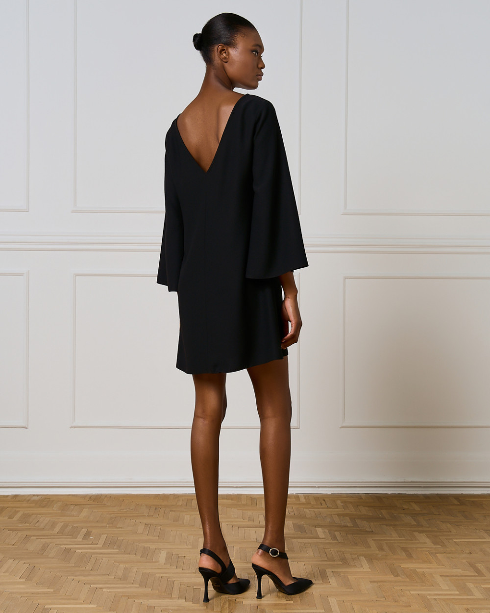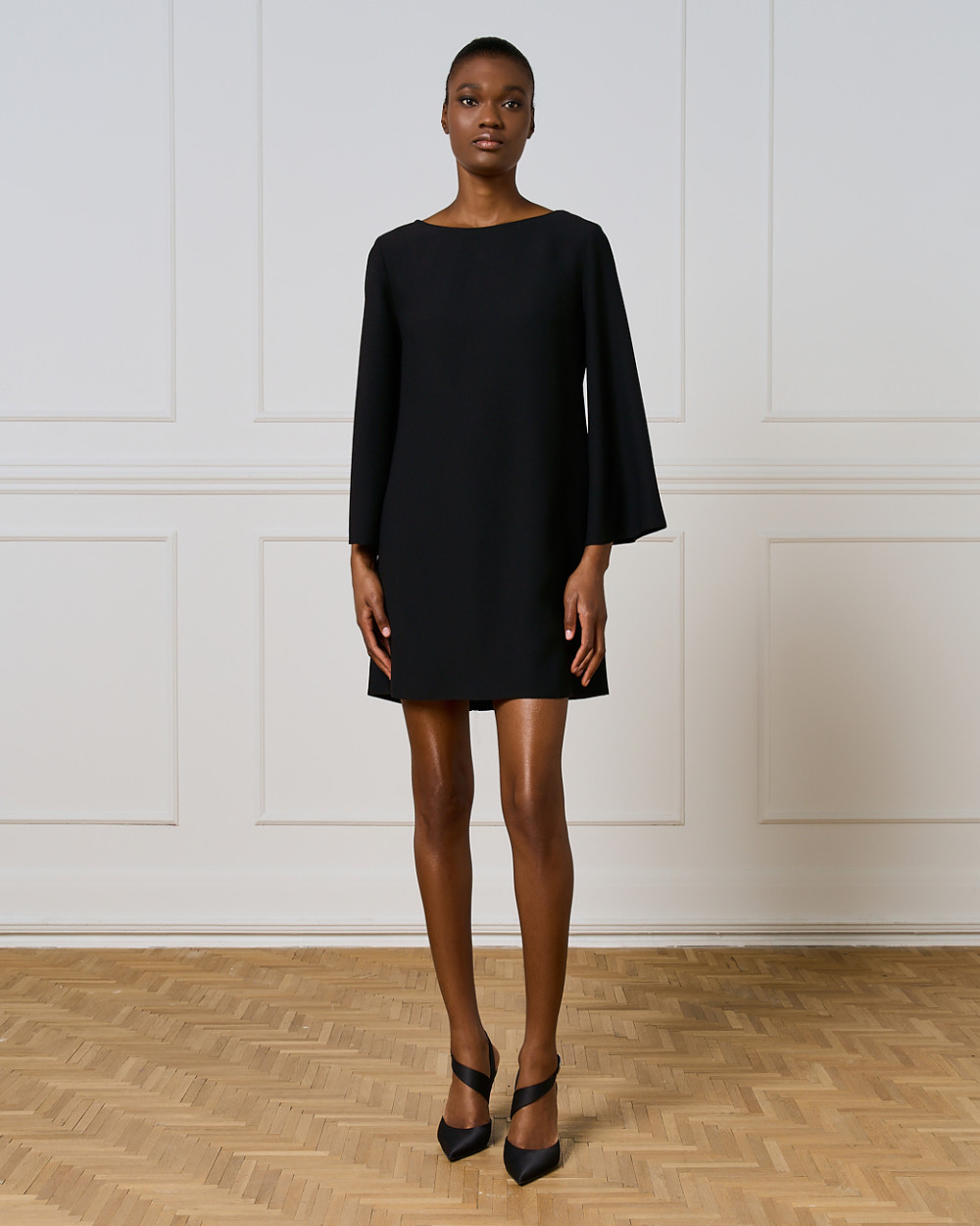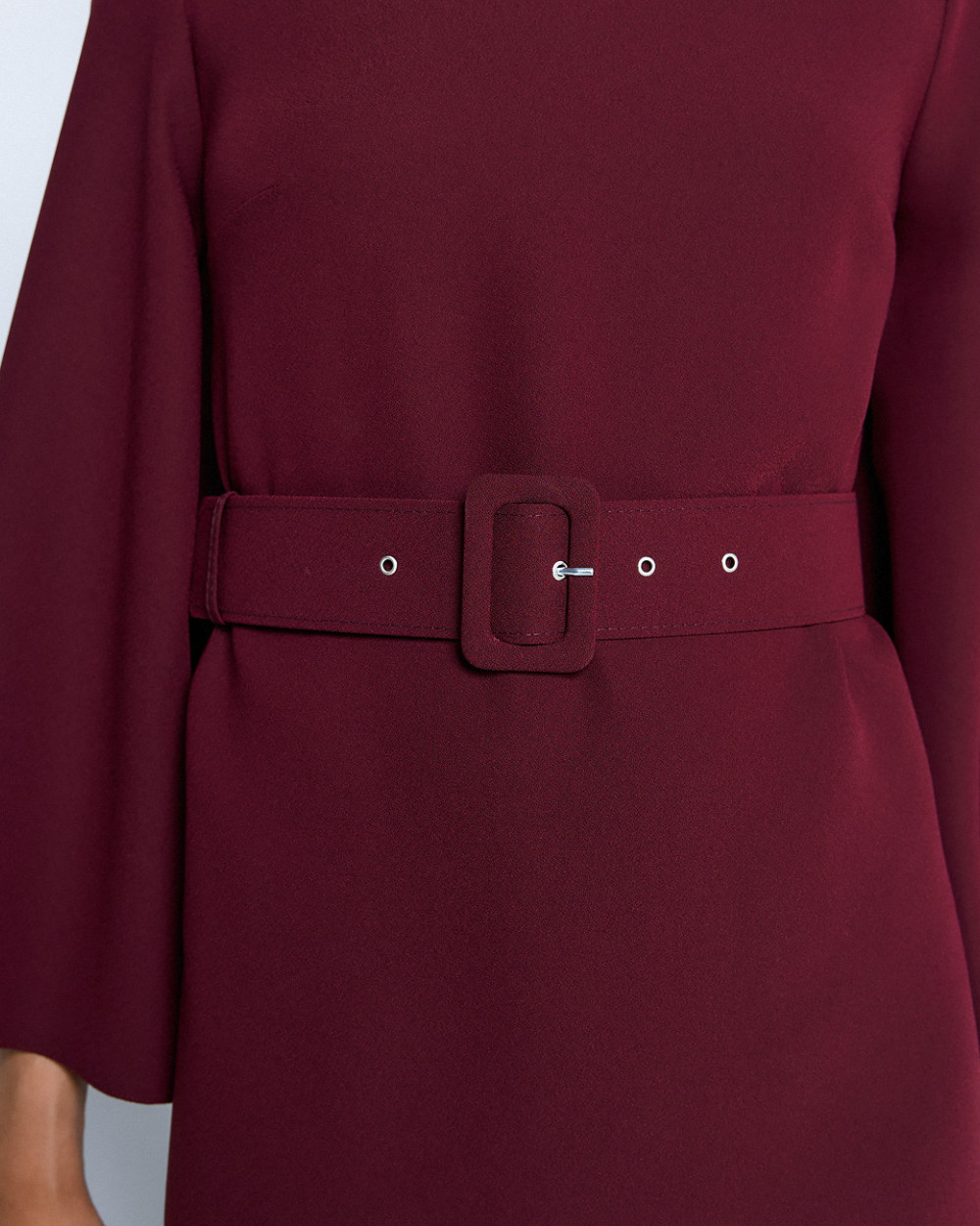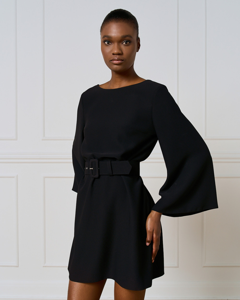 Mini dress with long wide sleeves from Access Fashion. It features a belt and a boat neckline. Choose it for stylish looks.