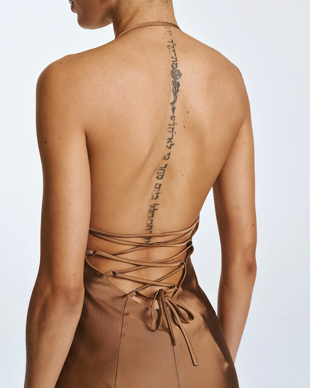 – Open back with criss-cross tie fastenings