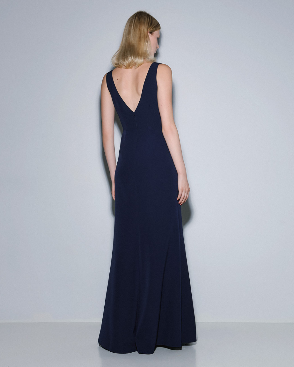 Maxi dress with a v-neckline and v-back and decorative stitching. A perfect choice for standout formal occasions.
