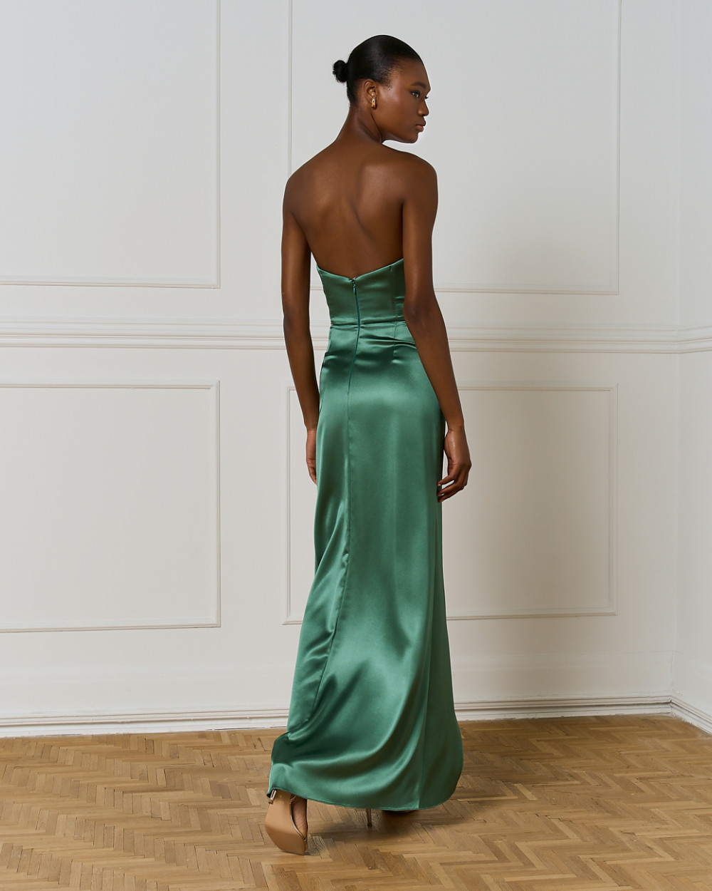 - Hidden zipper closure at the back