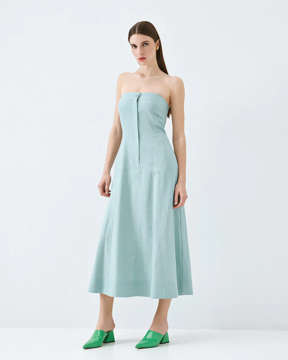 Strapless dress with zip and button – Access Fashion