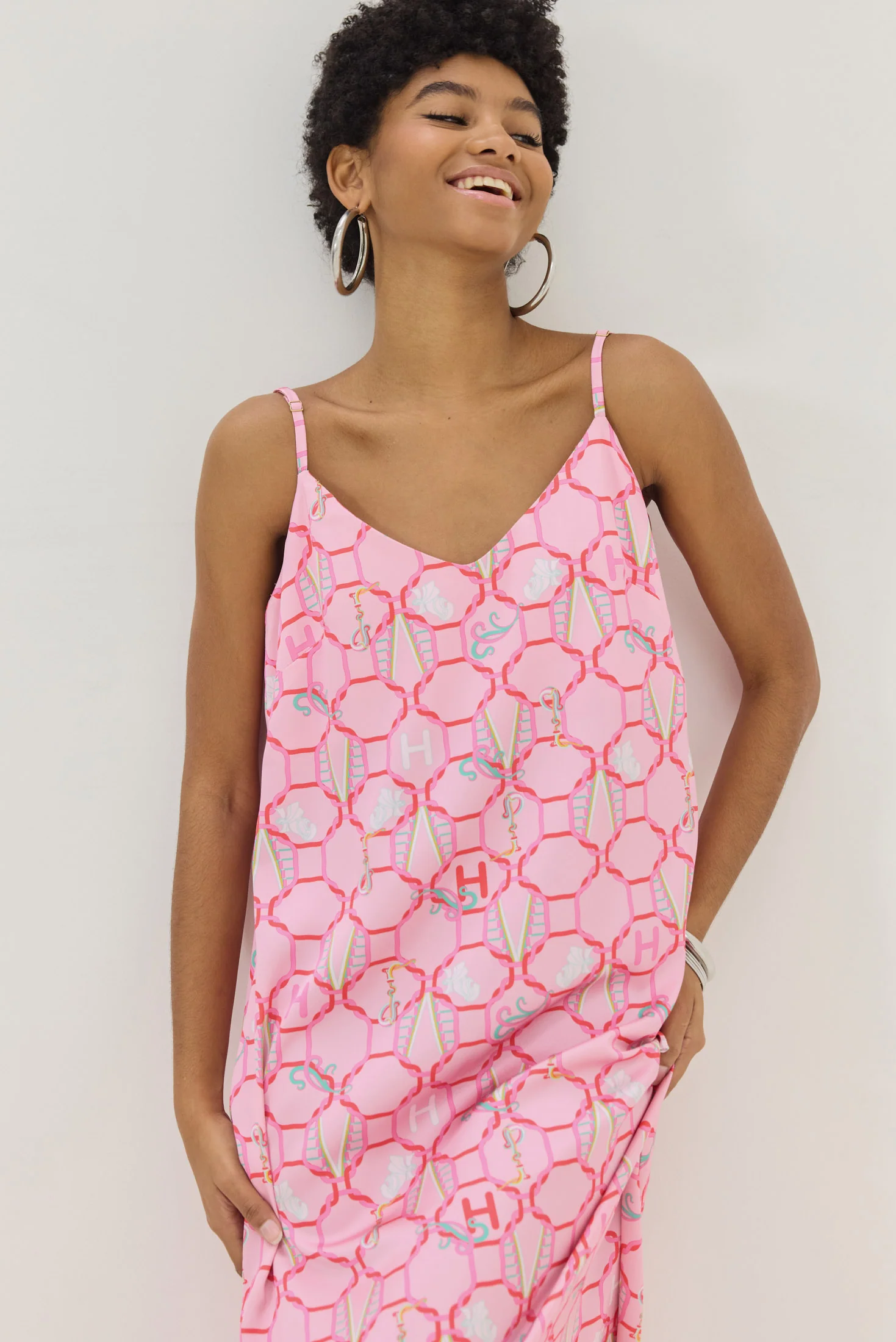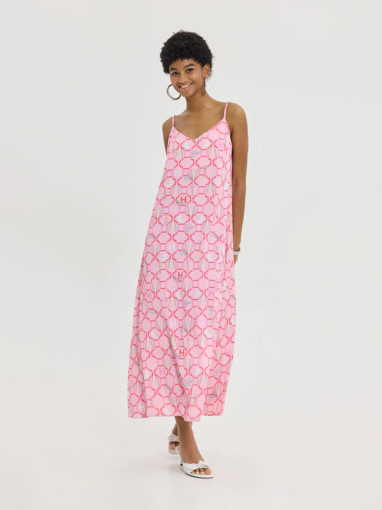 An effortlessly elegant piece with a fluid silhouette and soft sheen from Hemithea. The delicate straps and open back add a feminine edge, while the snake-print pattern brings a bold, modern attitude—perfect for elevated everyday wear.