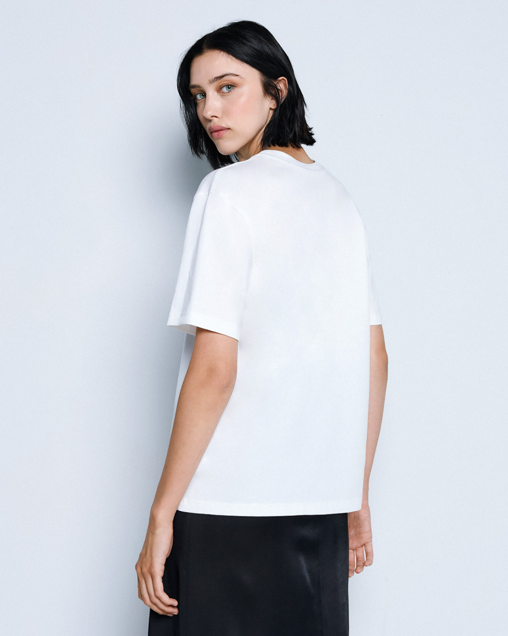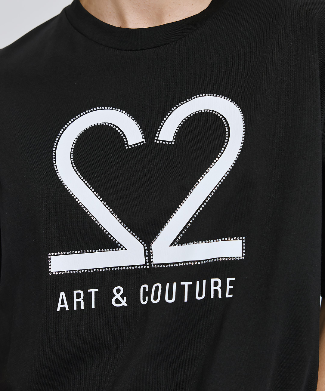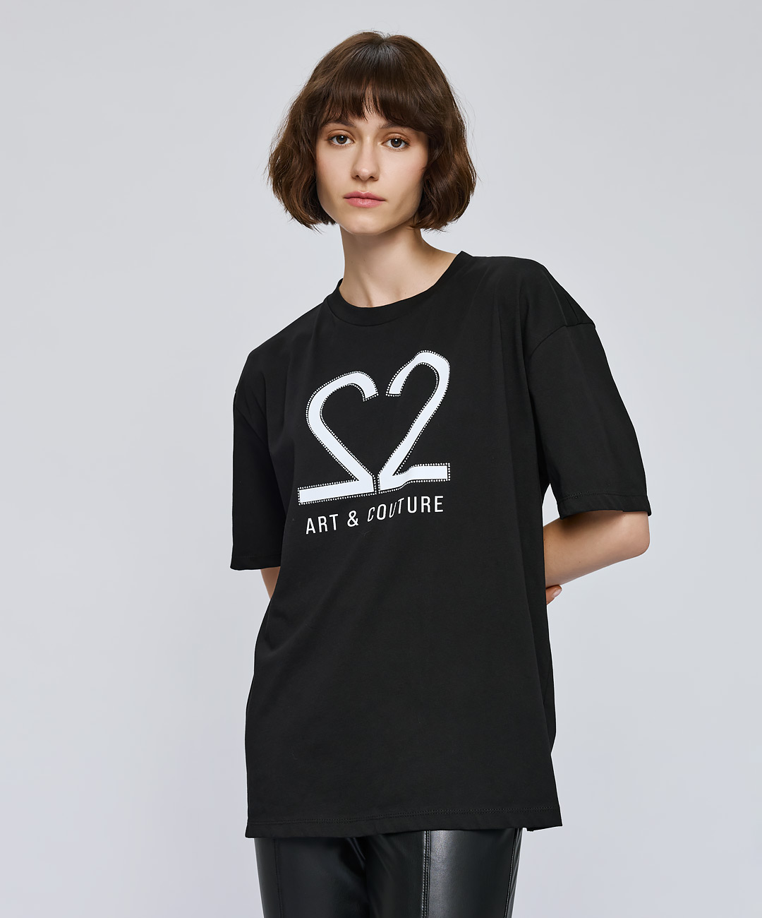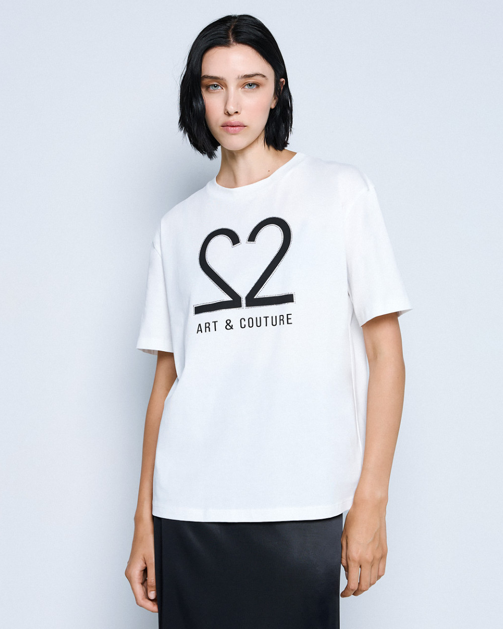 Cotton T-shirt with short sleeves and Art & Couture print from Access Fashion. It features rhinestone details. It is a stylish choice for elevated casual looks.