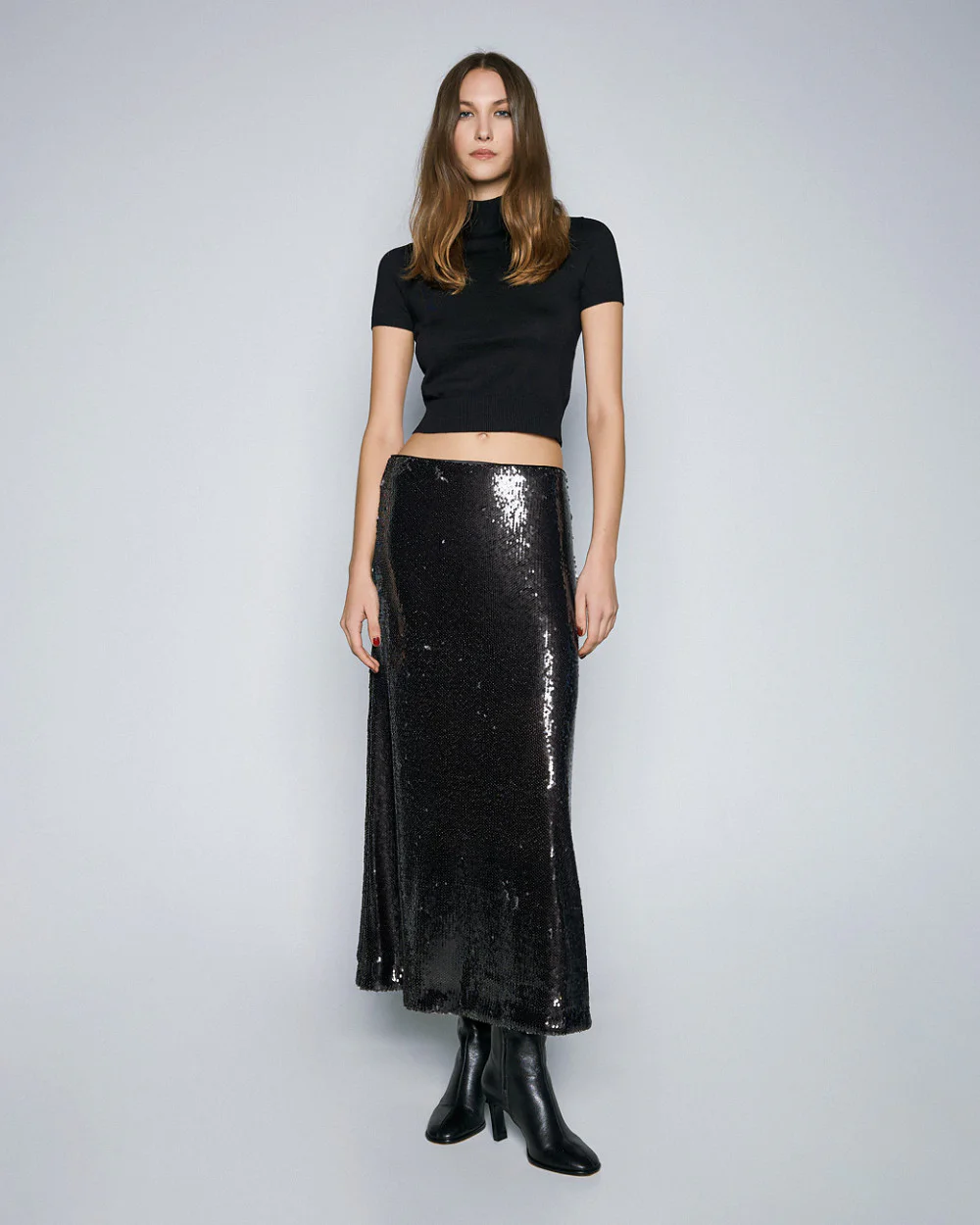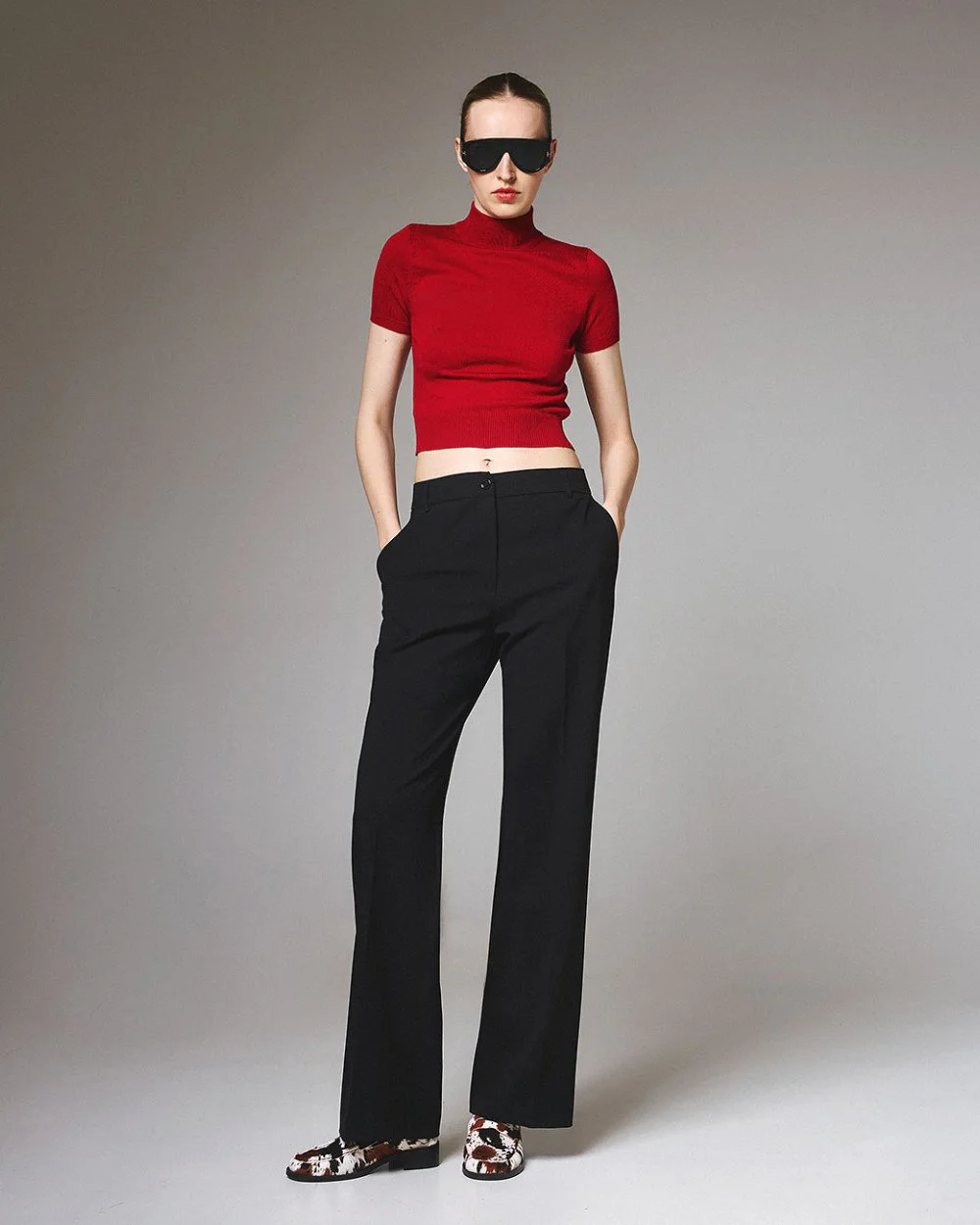 Cropped knitted turtleneck blouse from Access Fashion with short sleeves and ribbed details. It is an ideal choice for elegant everyday looks.