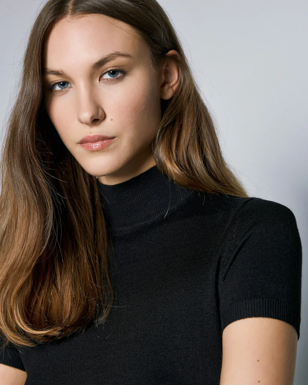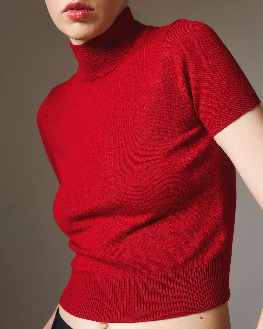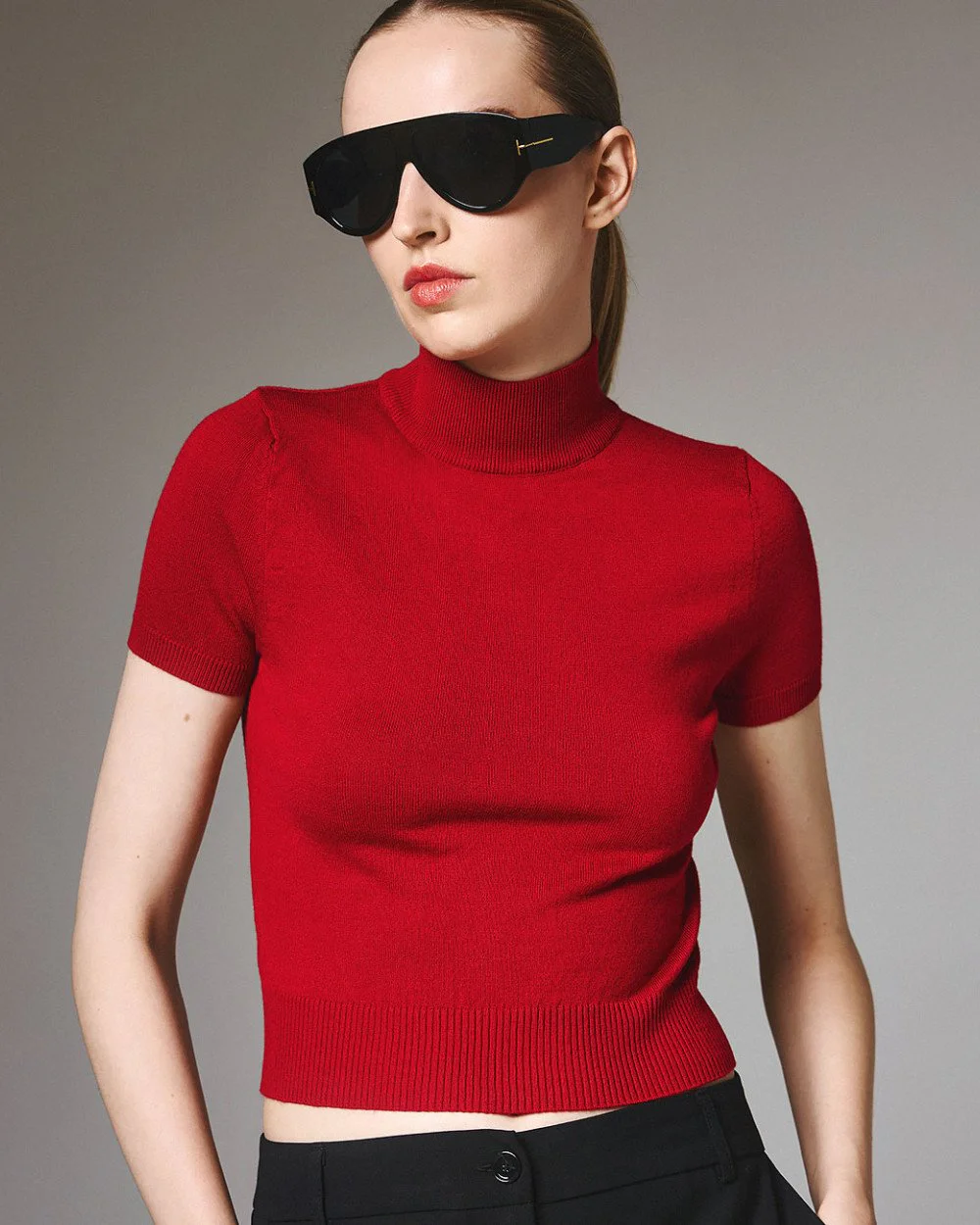 Knitted turtleneck blouse with short sleeves – Access Fashion