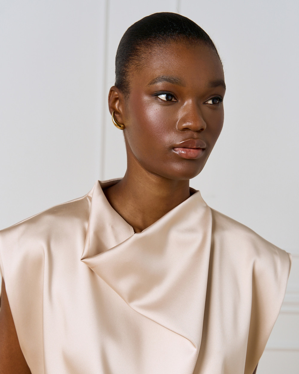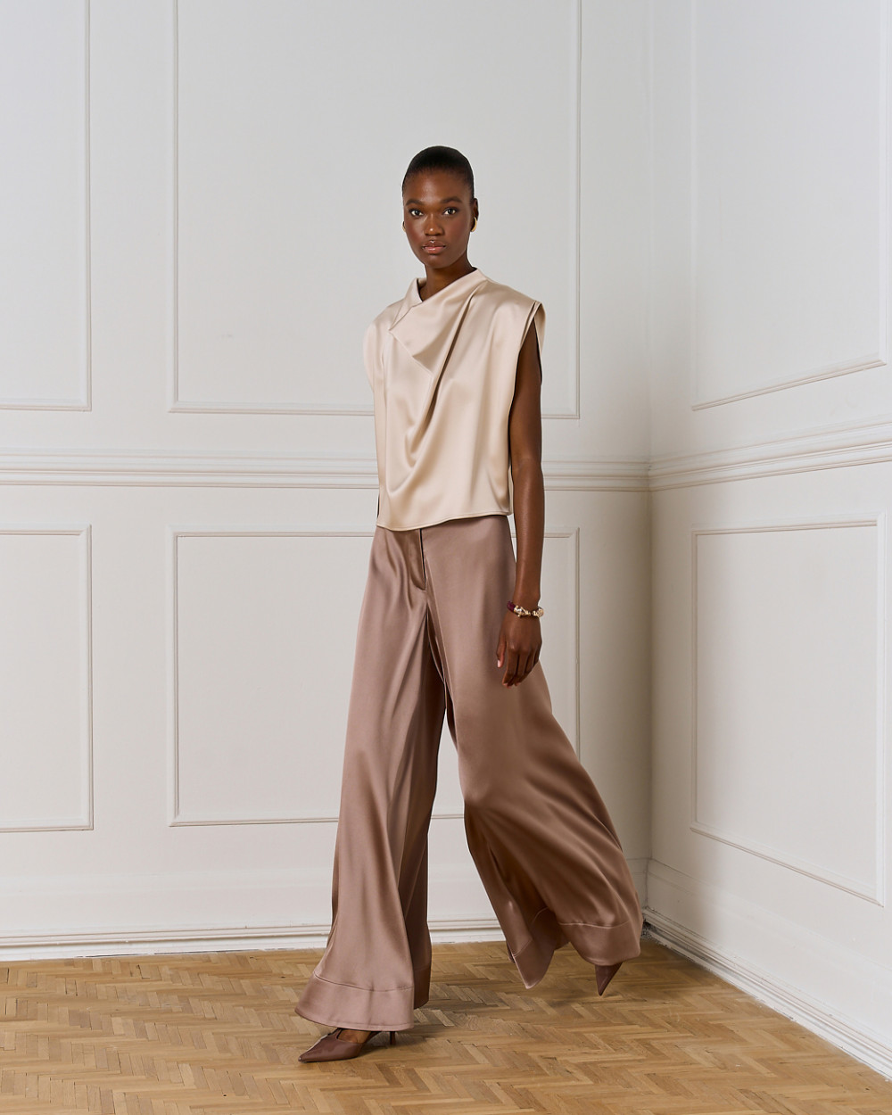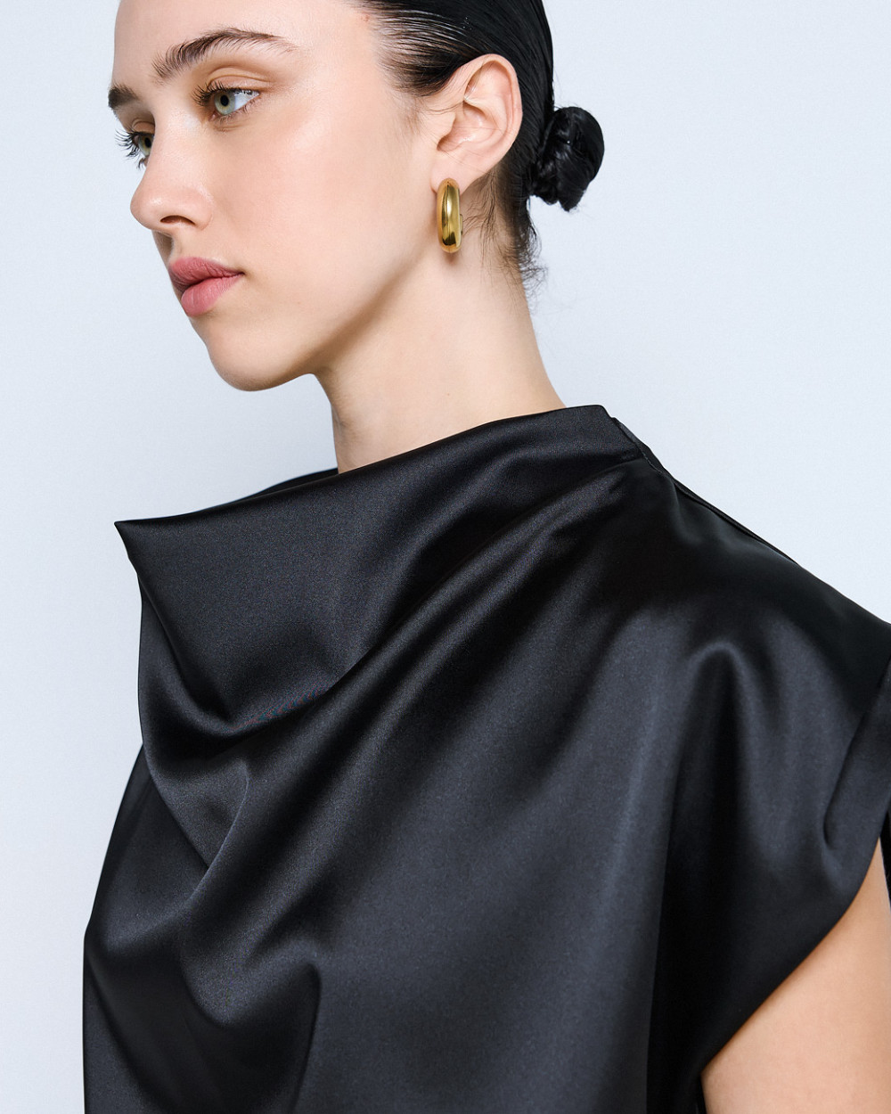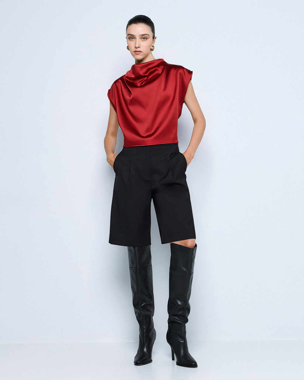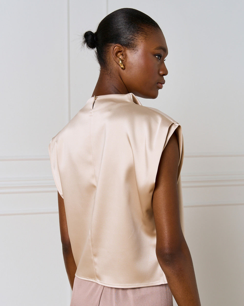 Sleeveless satin top with a draped neckline from Access Fashion. An essential for every elegant wardrobe.