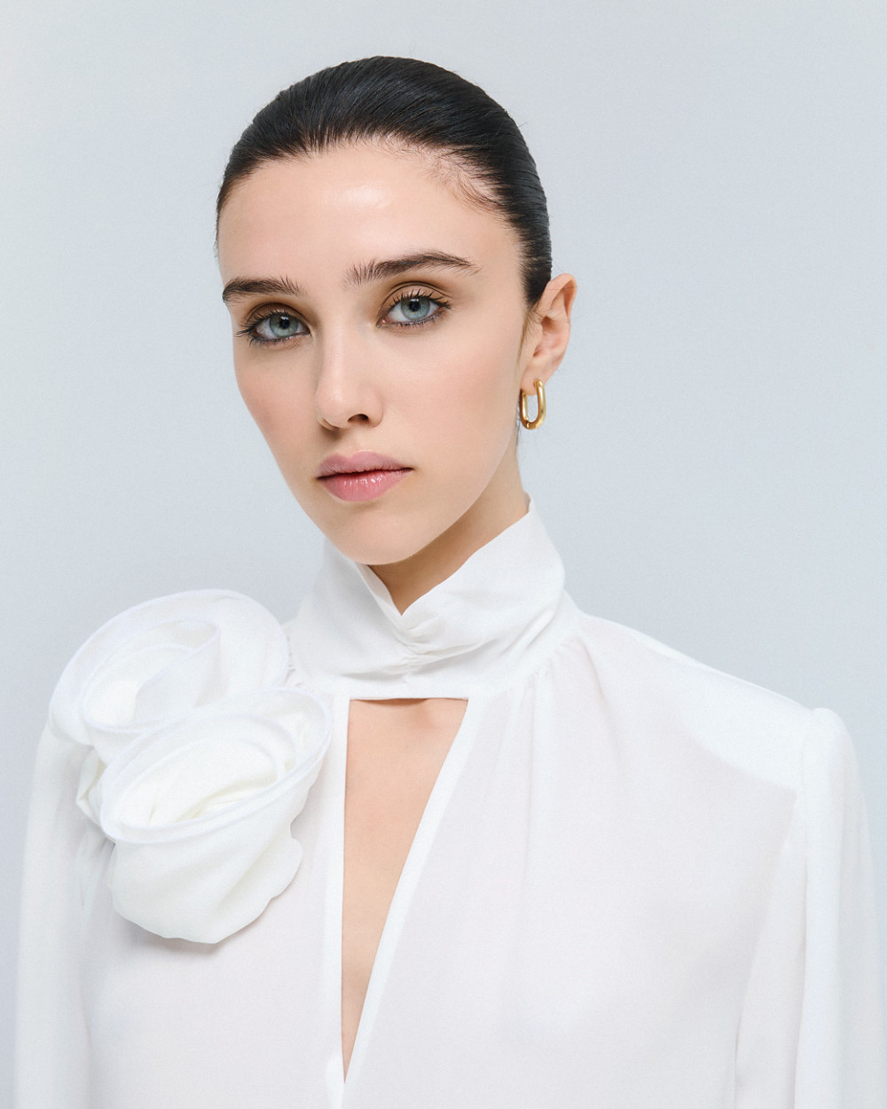 – High neck with V opening