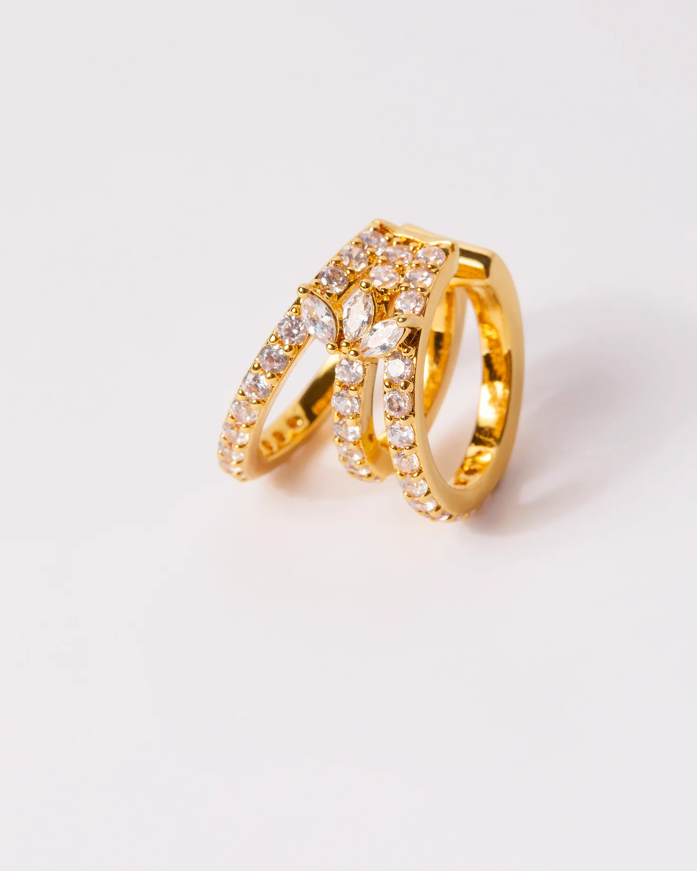 The WHITE MALIA ear cuff by MYA—BAY, gilded with 24-carat recycled fine gold, dresses the ear with elegance and radiance. Inspired by the MALIA earrings, it adds a sophisticated and luminous touch to your ear for a chic, confident look.