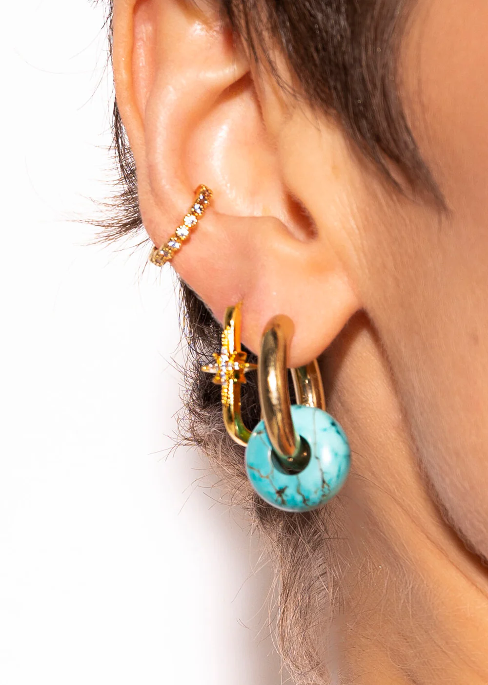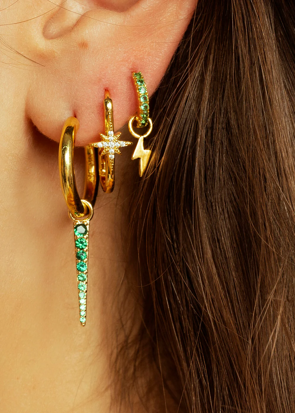 MYA—BAY’s DIWALI JAZZY earrings , plated with recycled 24-carat fine gold or coated with a thin layer of silver, combine two iconic elements of the brand: the modern silhouette of the JAZZY earring and the sparkle of our DIWALI star, delicately set with gemstones.
