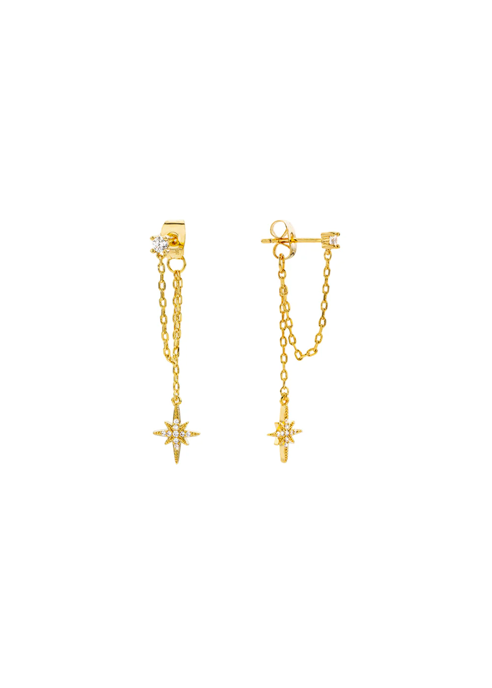 With their hanging star and thin chain, they catch the light without ever overdoing it. Wear them on either side of the ear, alone for a minimal cool effect, or stacked with your favorite pieces (hello EMMA earrings!).