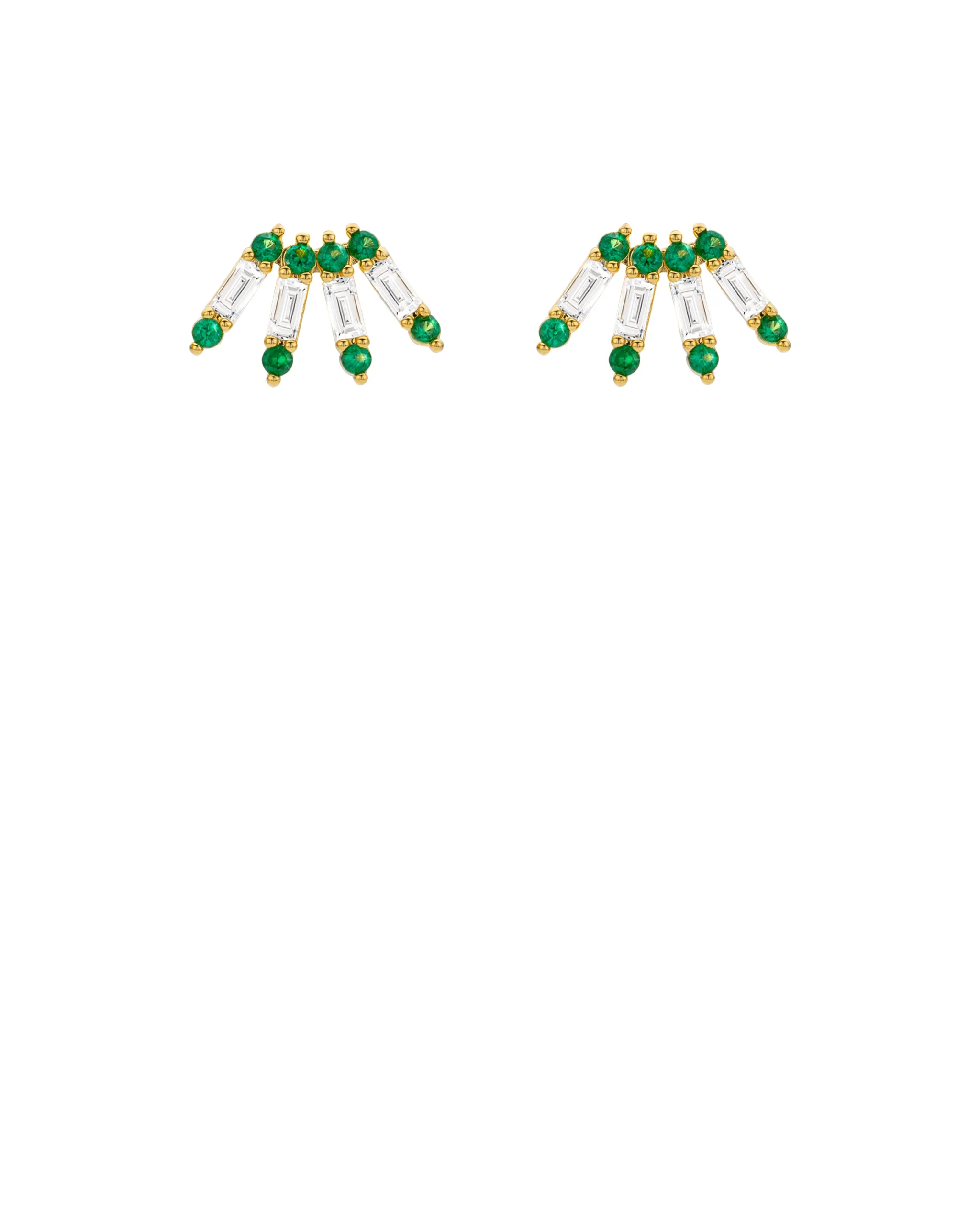 MYA—BAY’s GREEN VANTAGLIO earrings offer a fresh and modern take on the Italian fan. Their stylized design elegantly adorns the ear, enhanced by green zircons that add a luminous and bold touch. A graphic and vibrant piece of jewelry, perfect for those who love to add a pop of color to their looks while maintaining a chic aesthetic.