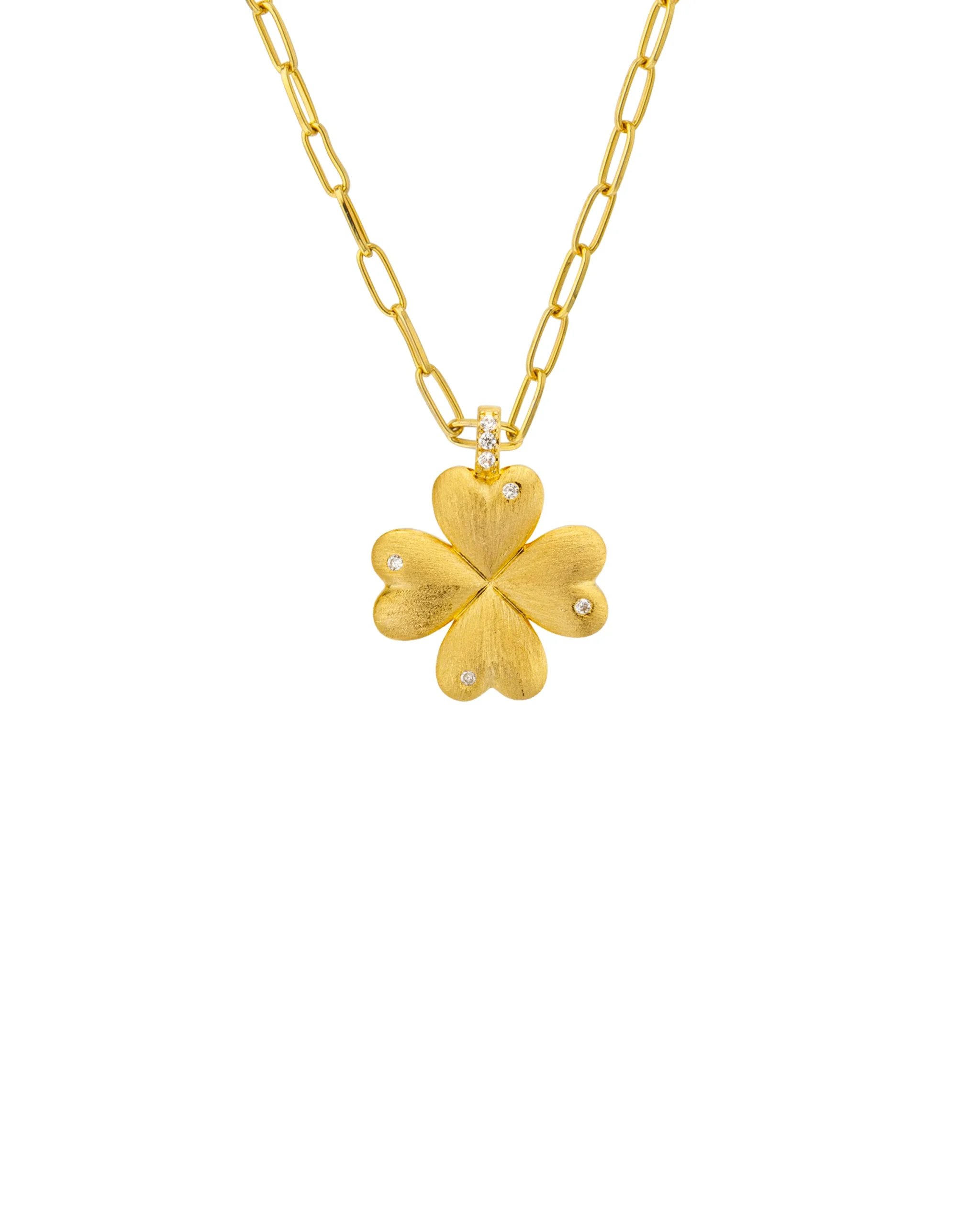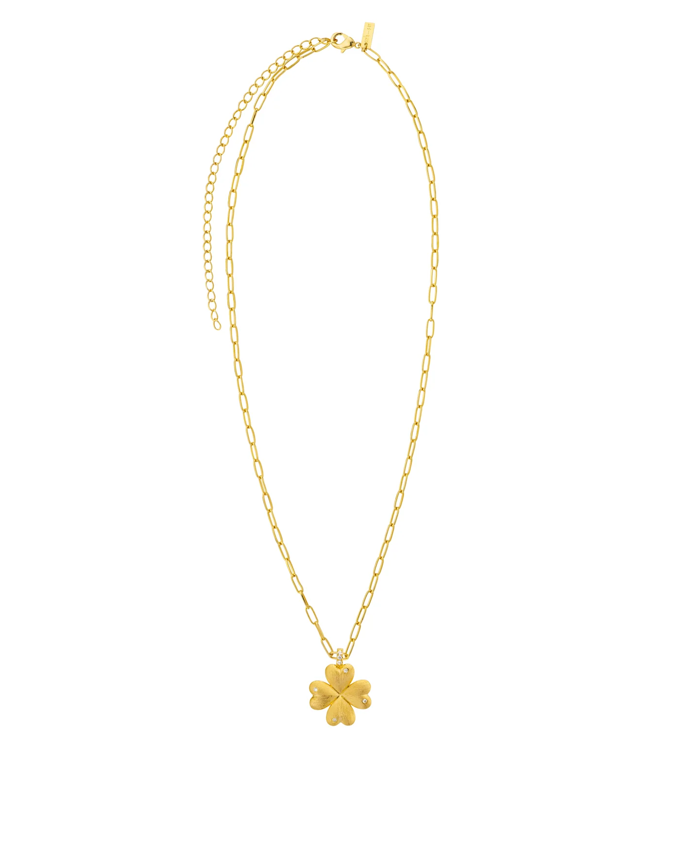 The LUCKY BABY CHAIN ​​necklace from MYA—BAY reimagines one of our iconic designs in an even more precious version. A variation of the famous Lucky Baby , it retains its brushed gold clover pendant, a symbol of luck and positivity, this time mounted on an elegant chain.