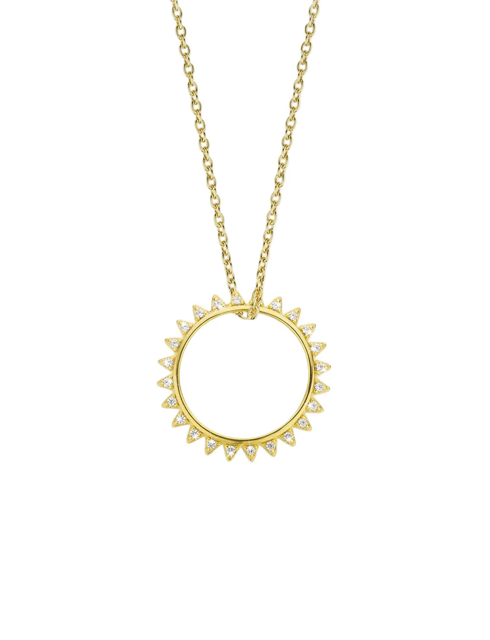 The SUNSET necklace by MYA-BAY captures the magic of a setting sun, enhanced with fine stones for a delicate and poetic touch of sparkle.