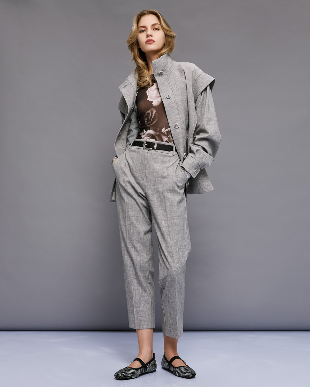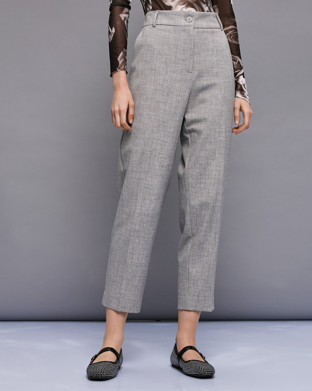 High-waist, straight-leg pants with side pockets and belt loops at the waist from Access Fashion. They feature decorative welt pockets at the back and a front zip and button closure. They are a must-have addition to any modern wardrobe.