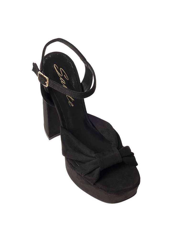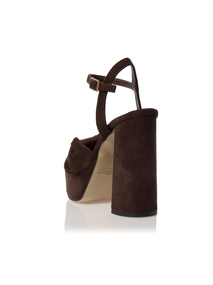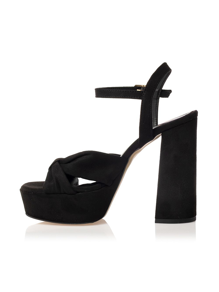 Bold and stylish, these platform sandals are designed to combine height with comfort. Featuring a chunky block heel and a knotted front detail. The ankle strap with buckle closure ensures a secure fit, making them an ideal choice for evening looks, parties, or chic everyday outfits.