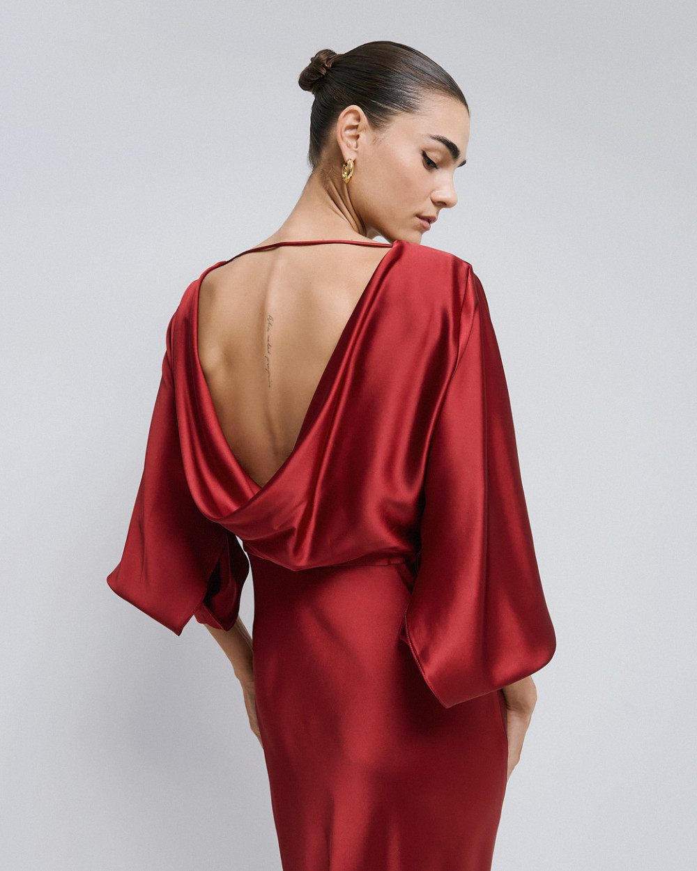 Satin dress with draped back – Access Fashion