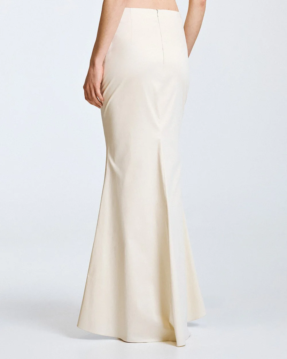 This maxi skirt features a sleek, figure-skimming silhouette that flares subtly toward the hem. Crafted from a smooth, structured fabric, the high-waisted design enhances the silhouette.