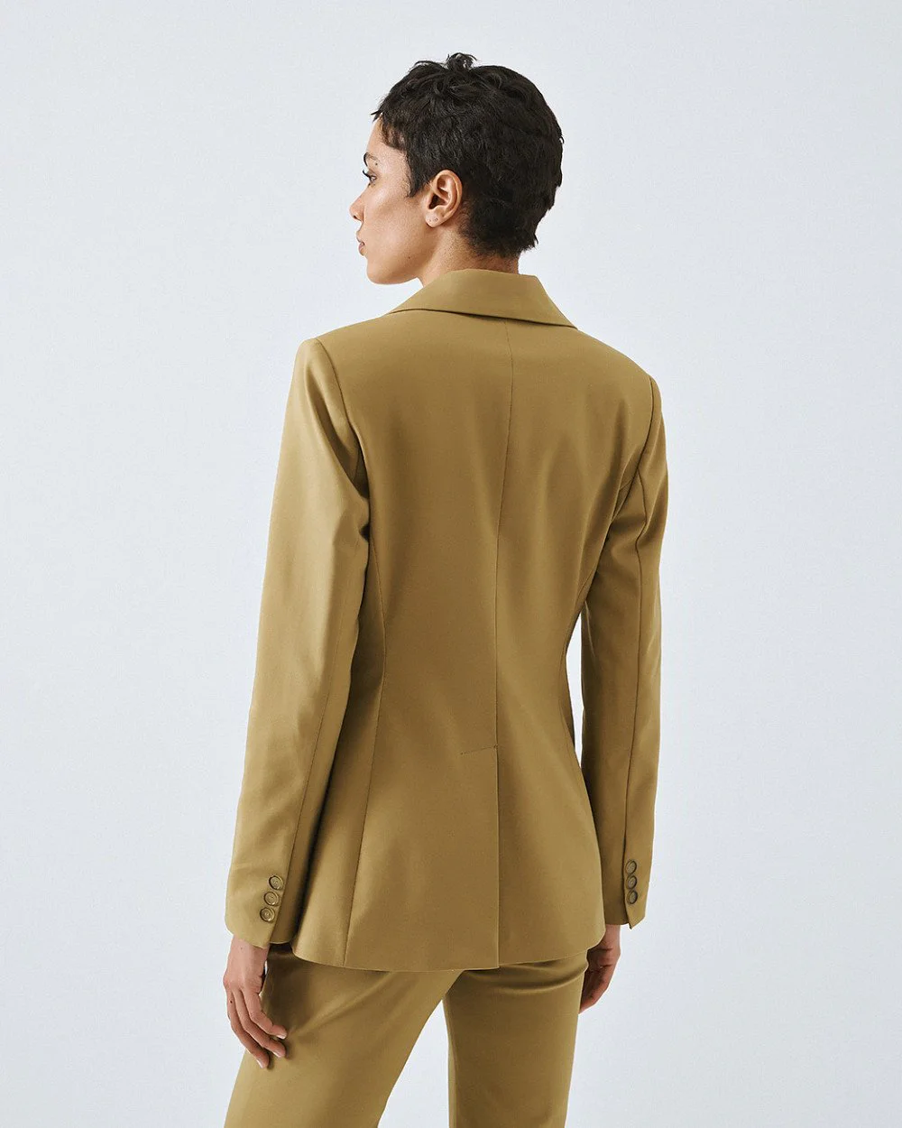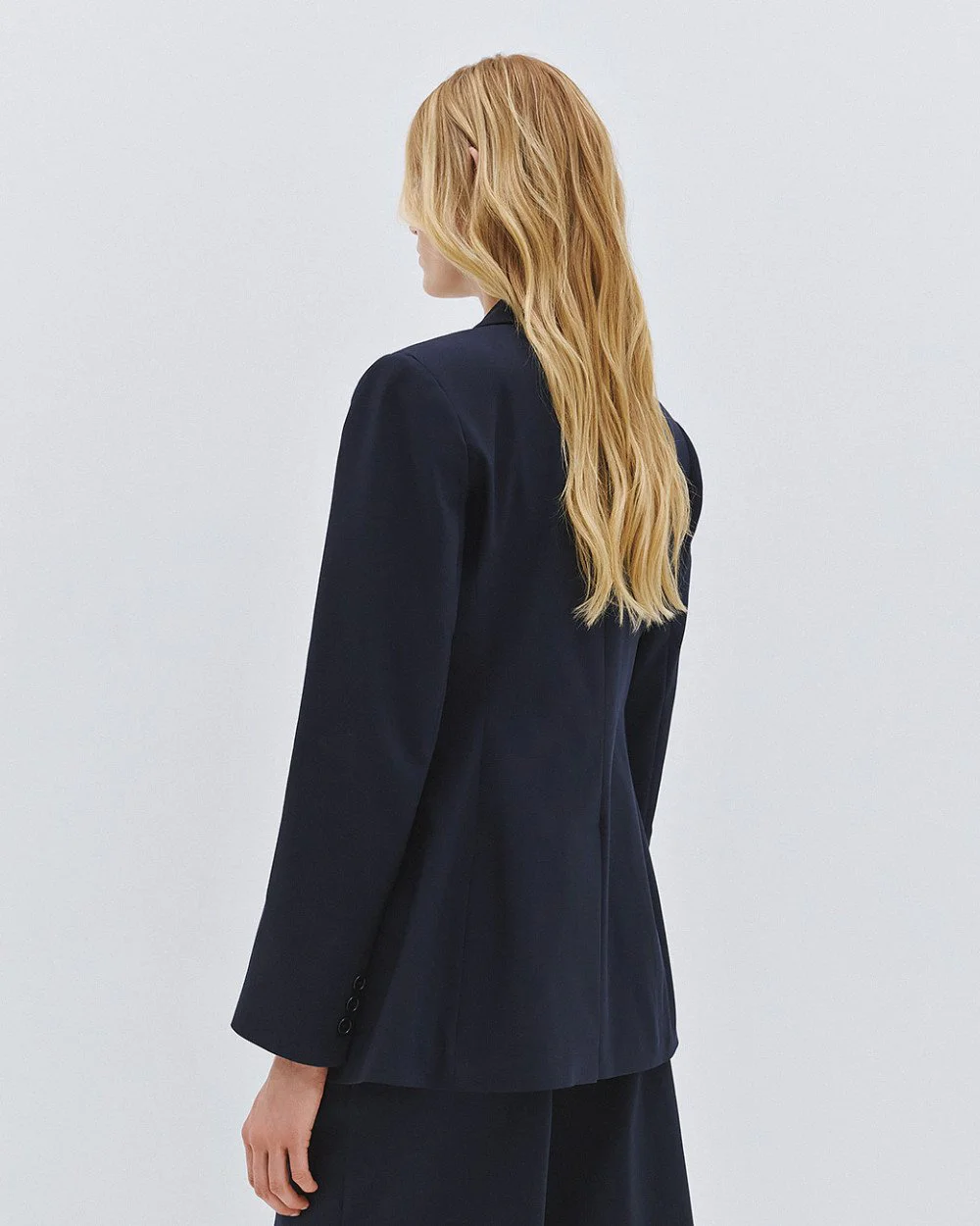 Blazer with a lapel collar, front flap pockets and long sleeves with buttoned cuffs. Features a single-button fastening at the front, padded shoulders and an inner lining.