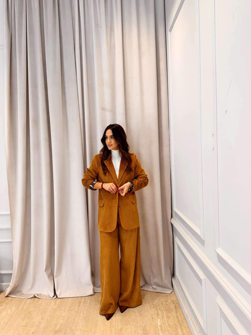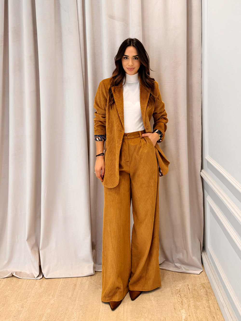 Camel corduroy blazer, this blazer features relaxed silhouette notched lapels, a single-button closure, and thoughtfully placed front pockets that enhance its tailored aesthetic.