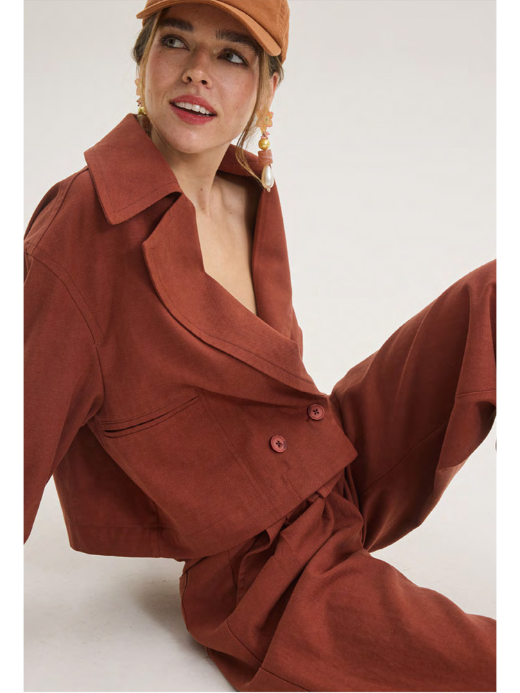 A modern take on tailoring, this cropped jacket is designed in a warm chilli and blue hues with a soft, natural texture from Innocent. Its relaxed structure and clean lines create an effortless silhouette, perfect for elevated everyday styling or coordinated sets.